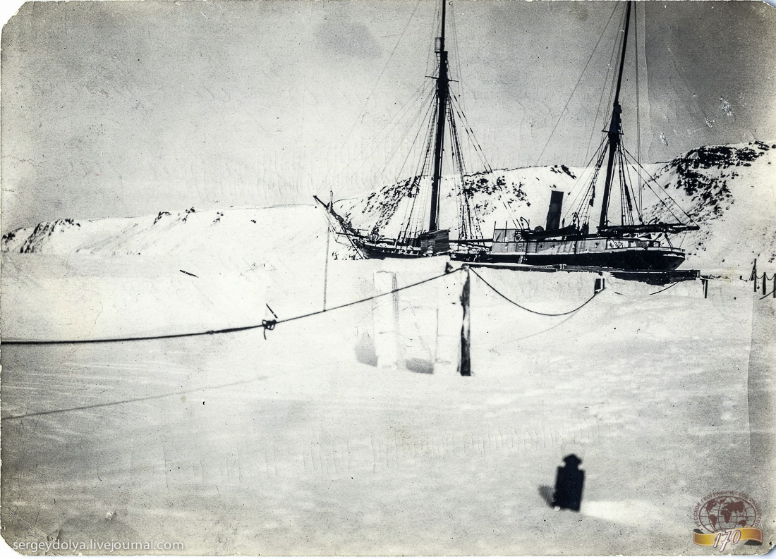 С кормы и с носа занесли стальной трос на берег, на камни, а с мачты взяли на берег толстый пеньковый трос, для того чтобы судно не сползло на глубину, т.к. рельеф дна у берега крутой. Грустно как-то на душе и тяжело на сердце, и все это от того, что среди состава экспедиции есть большие прохвосты. Расплата в России. Во всяком случае, возьмемся за работу и пойдём с Божьей помощью к полюсу.
