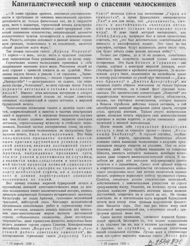 1934 год. "Челюскинская эпопея".