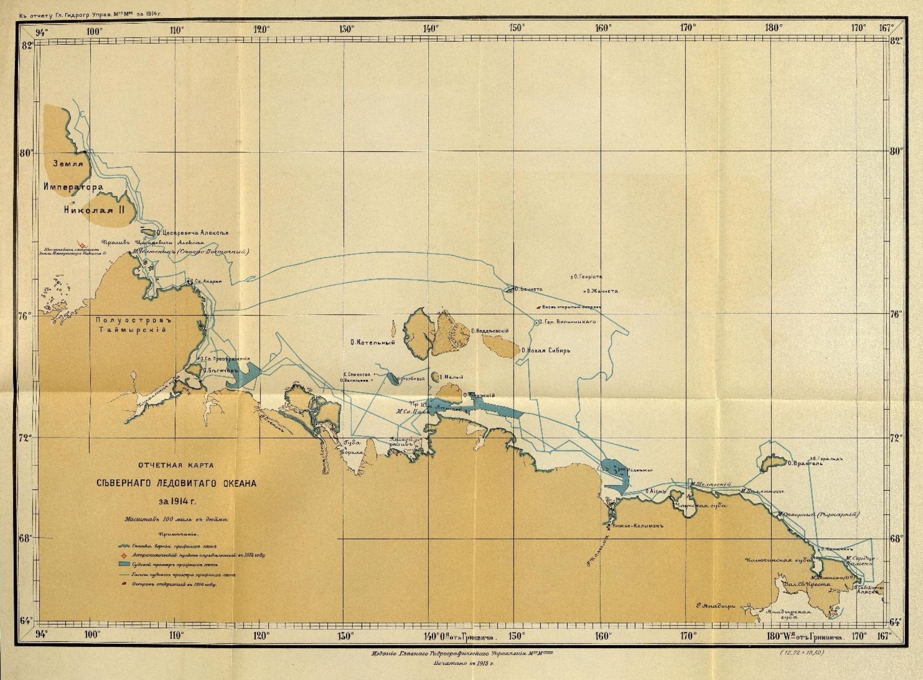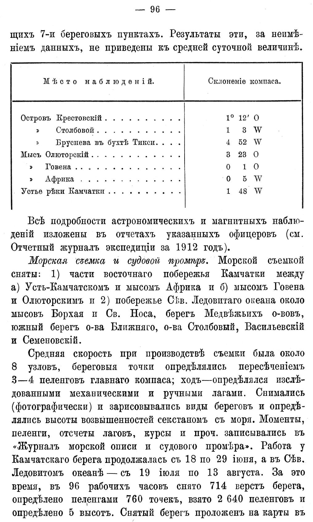 Работы по гидрографіи и метеорологіи. За время своего плаванія и зимовки гидрографическая экспедиція Сѣвернаго Ледовитаго океана описала южный берегъ земли ИМПЕРА-ТОРА НИКОЛАЯ II, западные берега острова ЦЕСАРЕВИЧА АЛЕКСѢЯ и берегъ полуострова Короля Оскара.