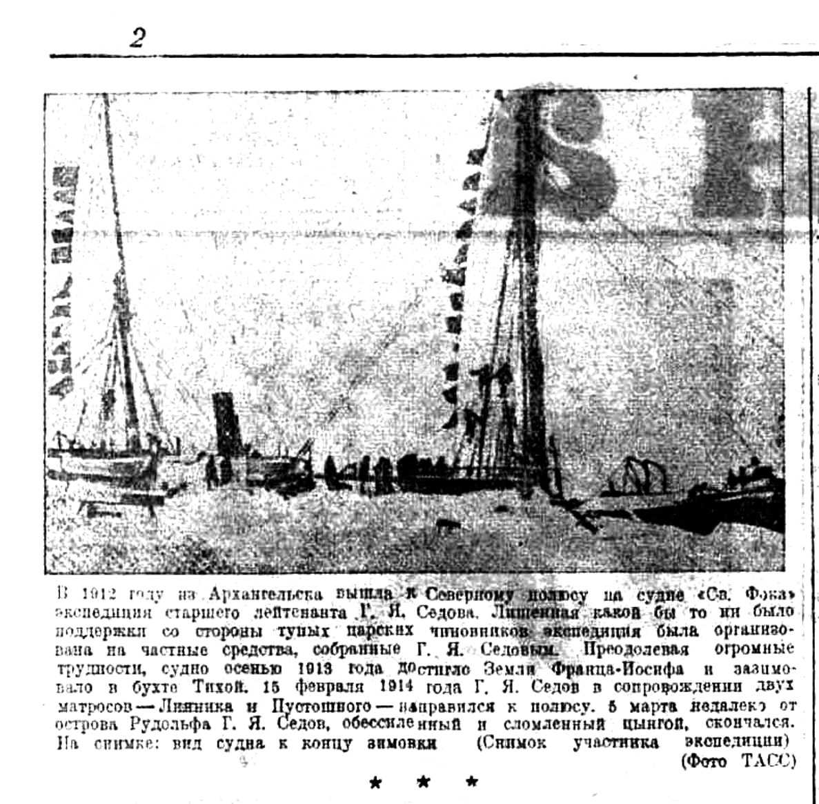 25-летие экспедиции Г.Я.Седова на Северный полюс//Правда 10 марта №57 1937