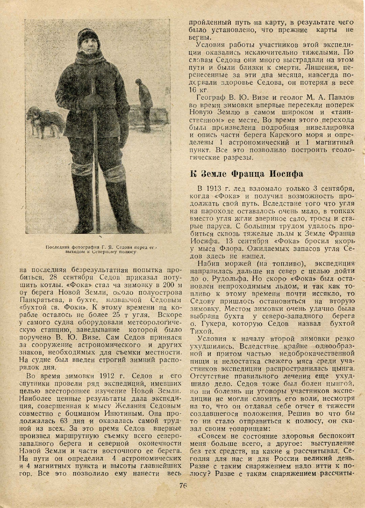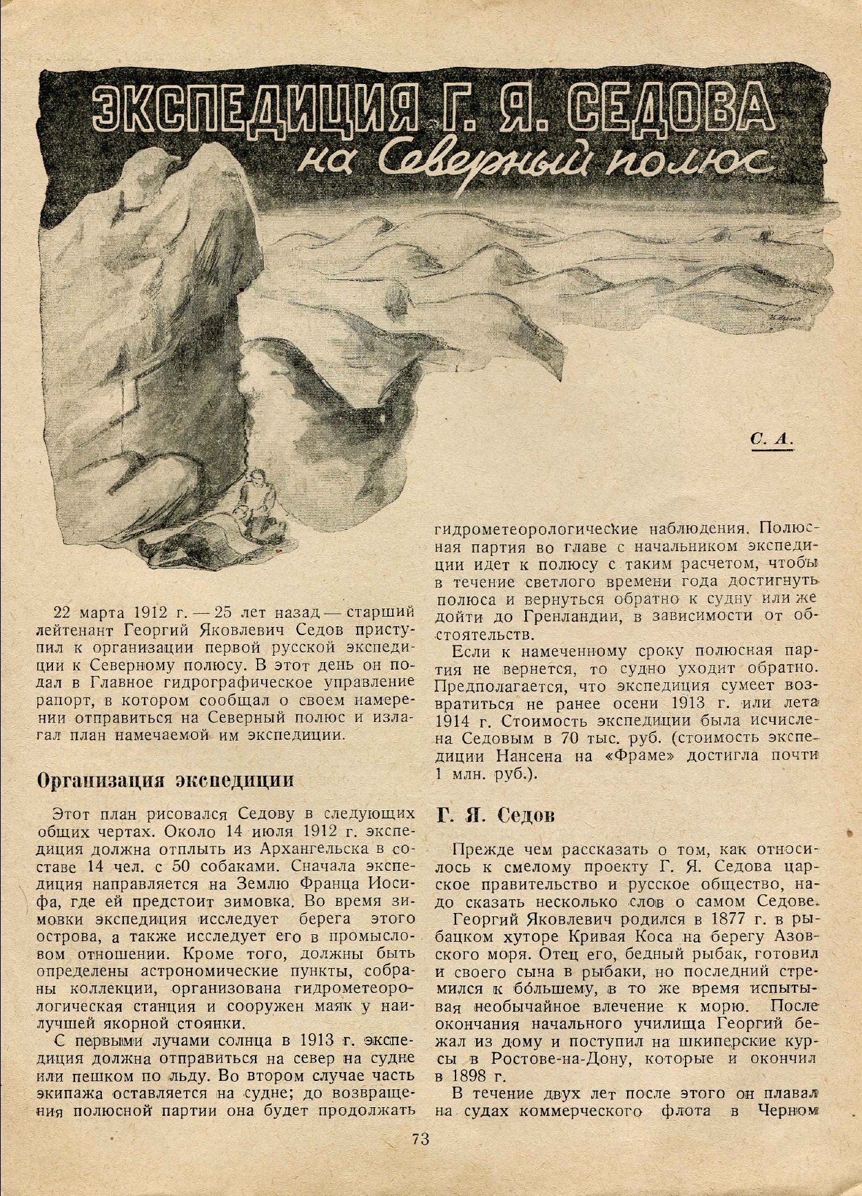 Экспедиция Г.Я. Седова на Северный полюс// Наука и жизнь №4 1937 с.73-78