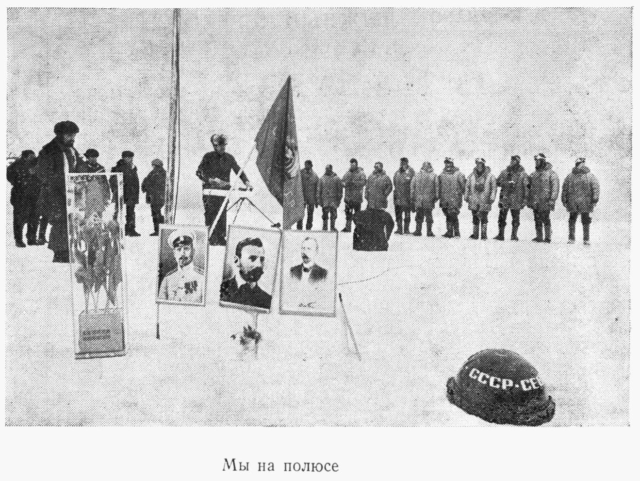 1 июня в 11 часов на Северном полюсе был поднят Государственный флаг СССР. Рядом с флагштоком установлены портреты русских полярных исследователей — Георгия Седова, Эдуарда Толля и Владимира Русанова. Здесь же был водружен флаг первой советской дрейфующей станции «Северный полюс», руководимой И. Д. Папаниным.