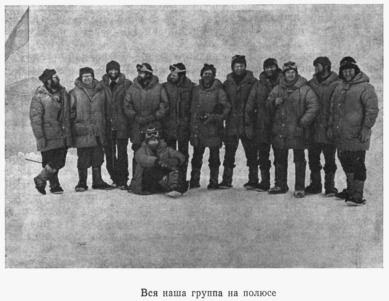 В состав маршрутной группы, которая пришла на полюс, входили Ю. И. Хмелевский, В. П. Леденев, А. В. Мельников, В. Ф. Рахманов, В. А. Давыдов, В. И. Шишкарев, Д. И. Шпаро.