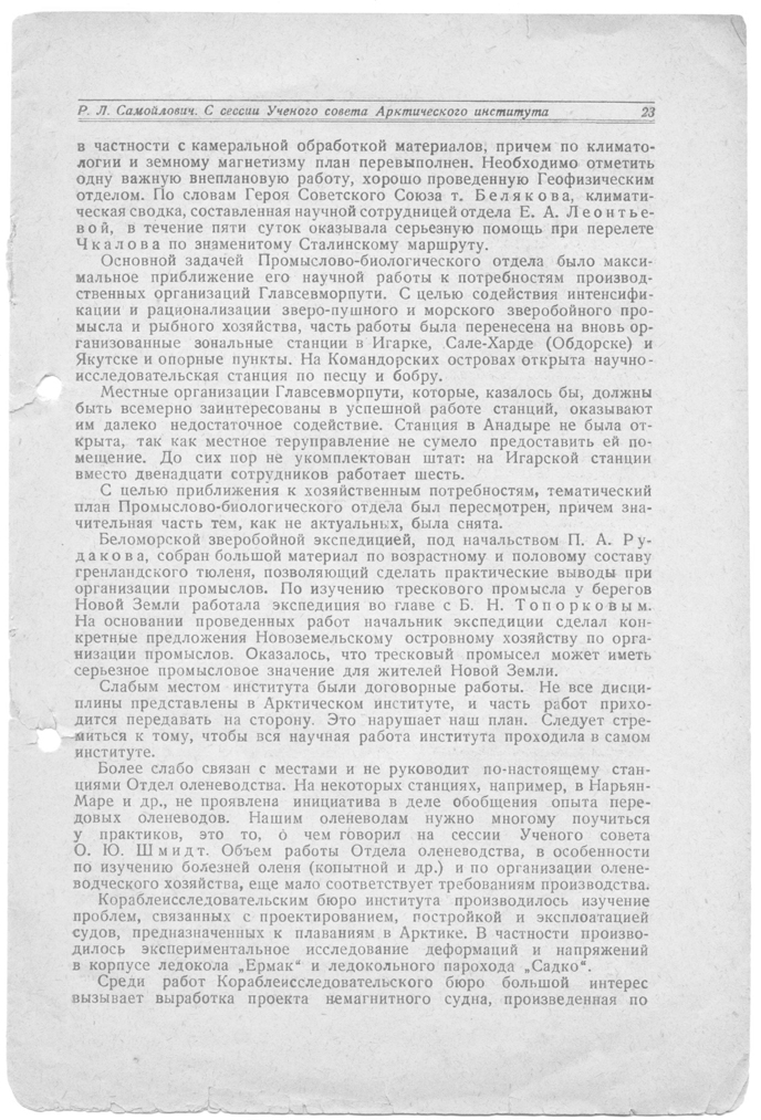 Р.Л. Самойлович. "С сессии ученого совета Арктического Института", Советская Арктика, 1937, март, с.20
