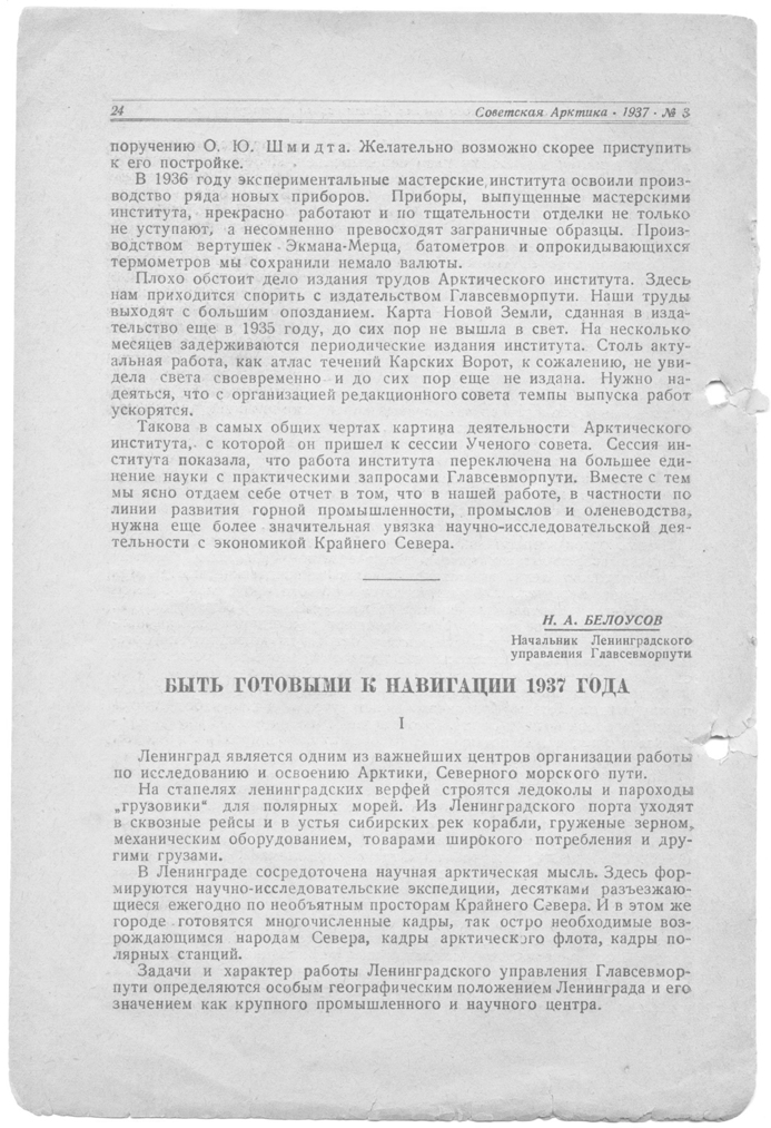 В январе 1936 года на совещании партийных и хозяйственных работников Главсевморпути справедливой критике была подвергнута работа Всесоюзного Арктического института. Нам указывали на отставание научно-исследовательской мысли от практических требо-наний,на то, что Арктический институт— научный центр всей системы Главсевморпути— недостаточно освещает путь