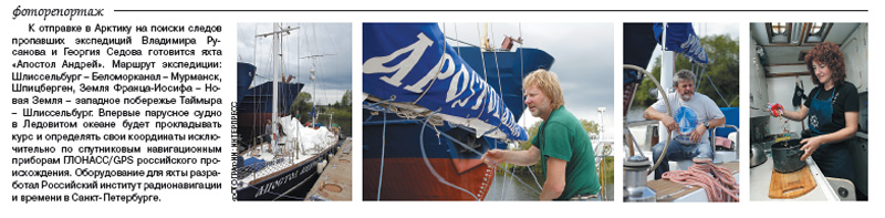 Кстати, экипаж «Апостола» не впервые прикасается к истории освоения русской Арктики начала прошлого века. Летом прошлого года «Апостол Андрей», пытаясь разгадать тайну гибели Г.Я. Седова, побывал на Земле Франца-Иосифа, а в навигацию 2010-го яхта обогнула Новую Землю.