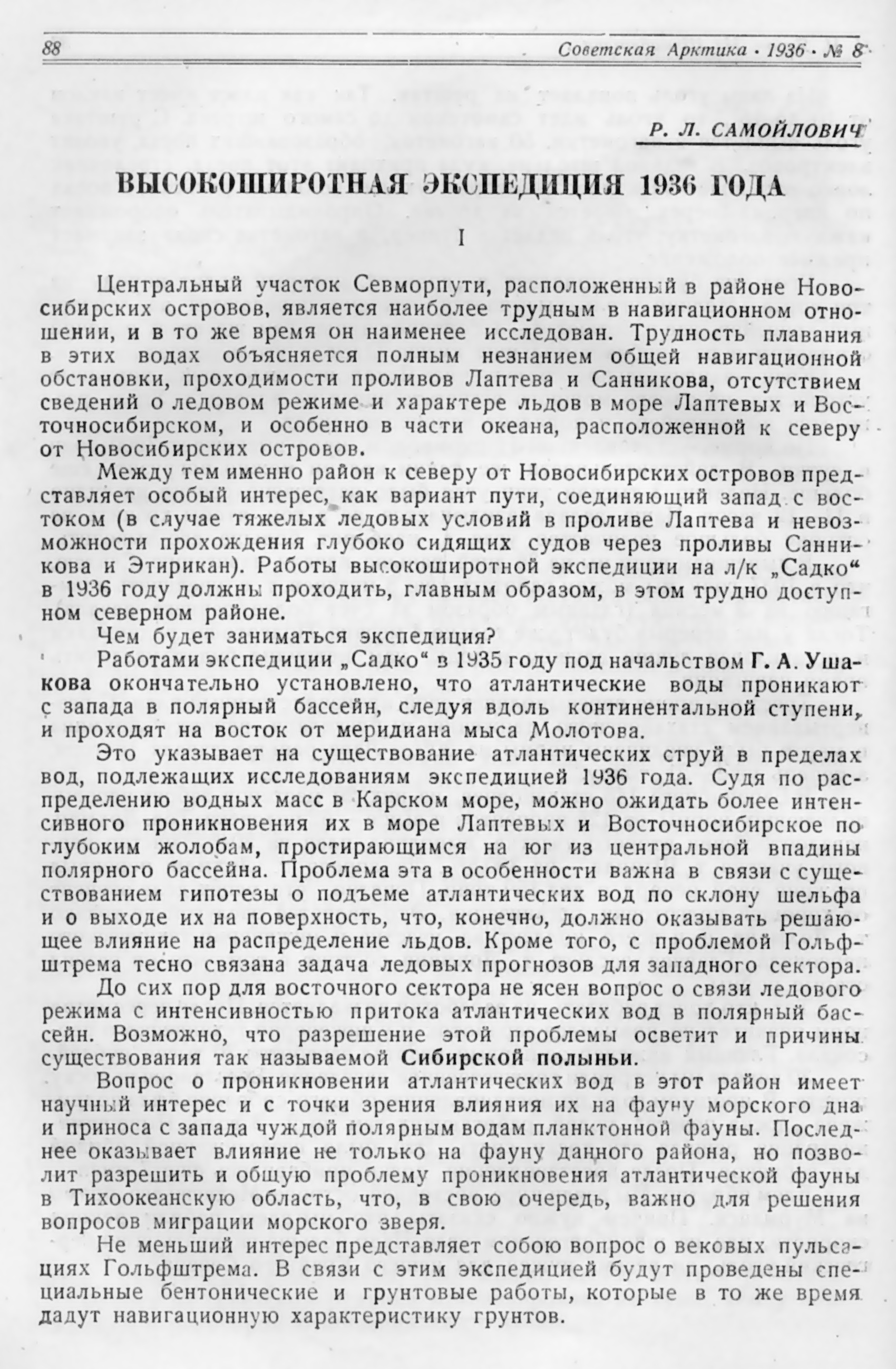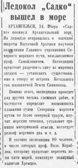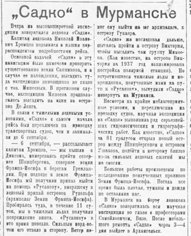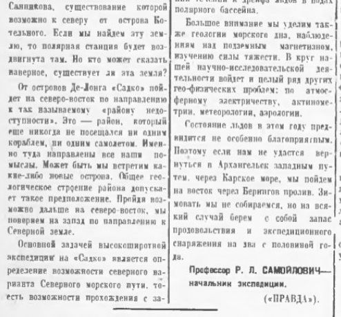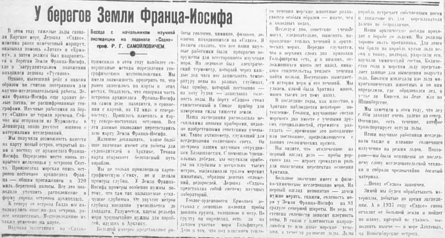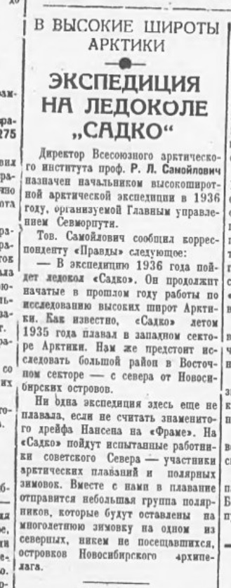 В "Советской Арктике" №8, 1936 г. есть статья Самойловича о планах 2-й высокоширотной экспедиции на "Садко"