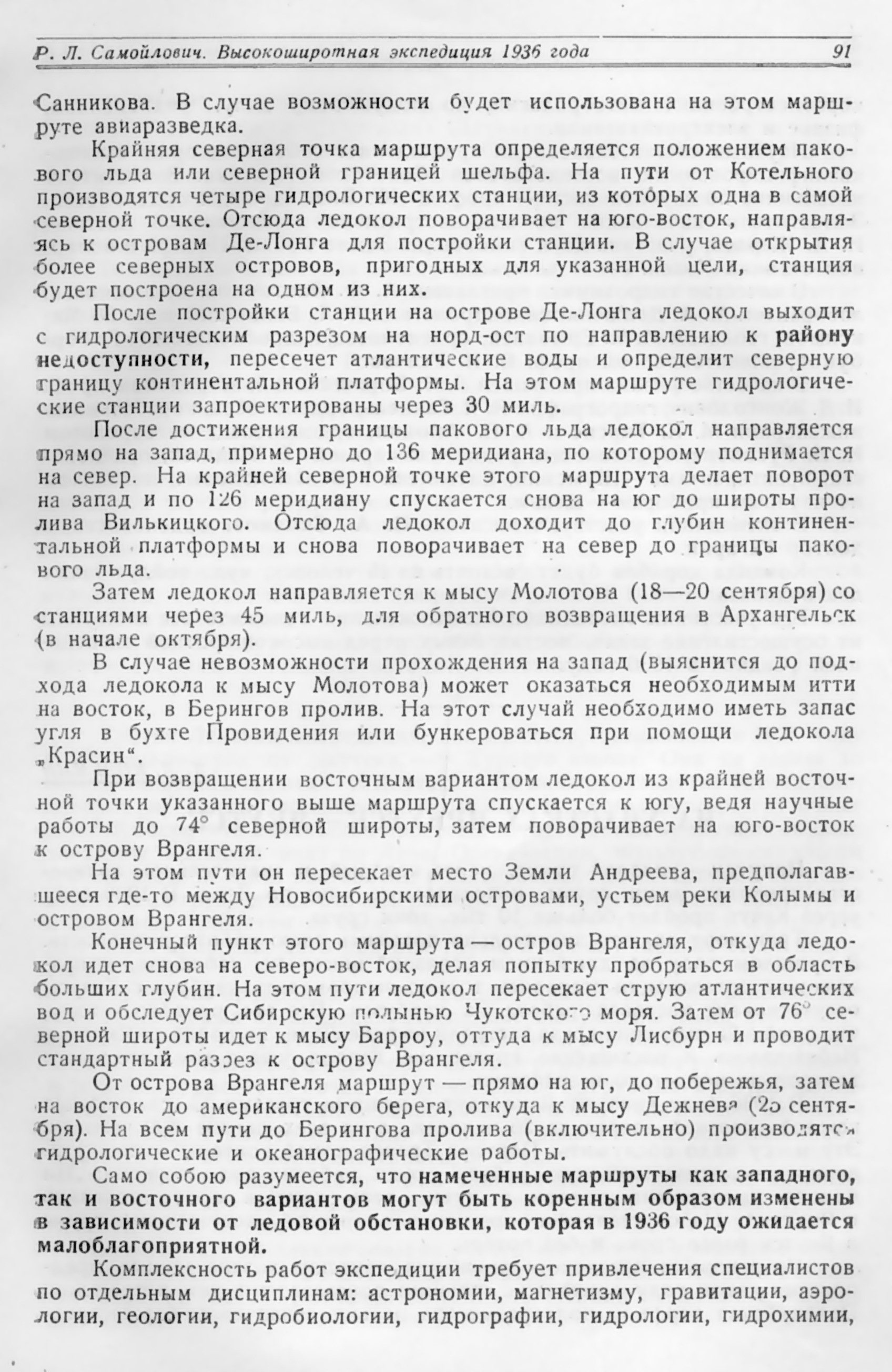 Само собою разумеется, что намеченные маршруты как западного, так и восточного вариантов могут быть коренным образом изменены в зависимости от ледовой обстановки, которая в 1936 году ожидается малоблагоприятной.