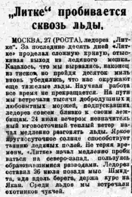Я спрашиваю, где радио. Оказывается, оно снято еще месяц назад. Меня это сильно огорчает; С «Литке» не свяжешься, а там, вероятно, сильно беспокоятся.