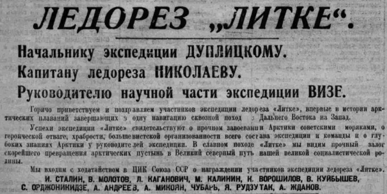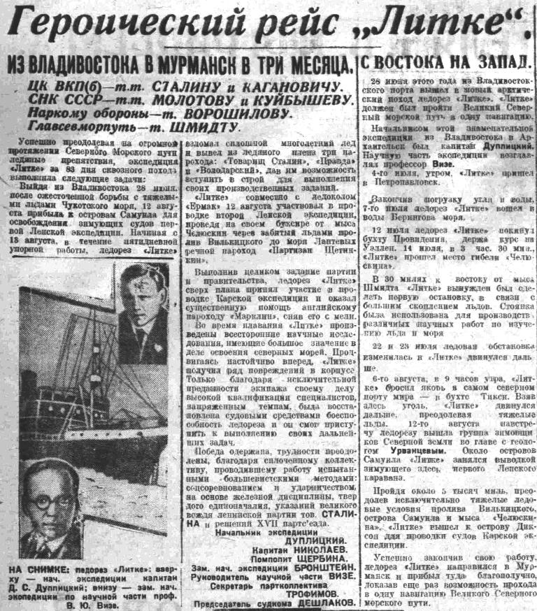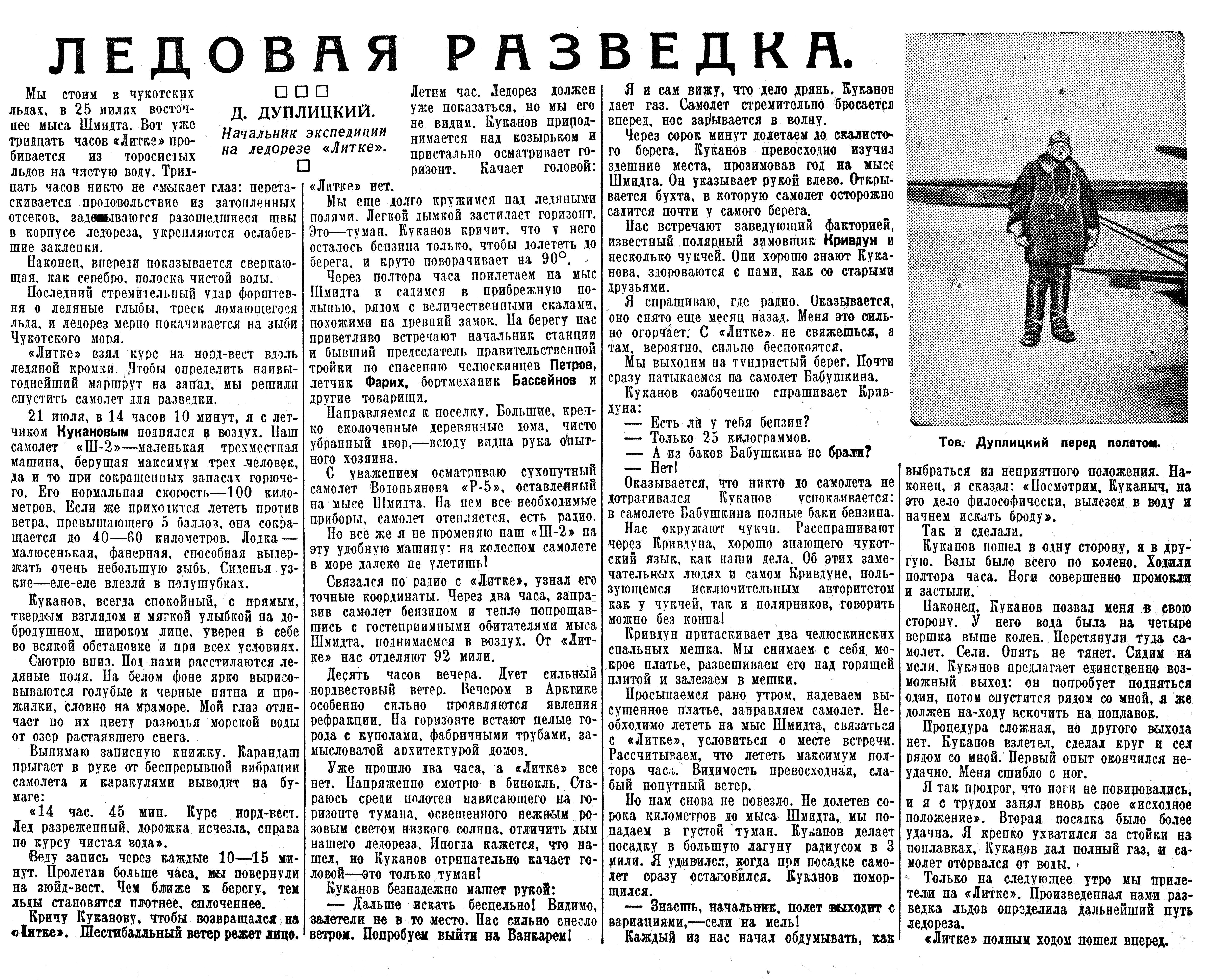 Только на следующее утро мы прилетели на «Литке». Произведенная нами разведка льдов определила дальнейший путь ледореза.