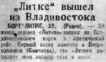 Мы стоим в чукотских льдах, в 25 милях восточнее мыса Шмидта. Вот ужо тридцать часов «Литке» пробивается из торосистых льдов на чистую воду. Тридцать часов никто не смыкает глаз: перетаскивается продовольствие из затопленных отсеков, заделываются разошедшиеся швы в корпусе ледореза, укрепляются ослабевшие заклепки.