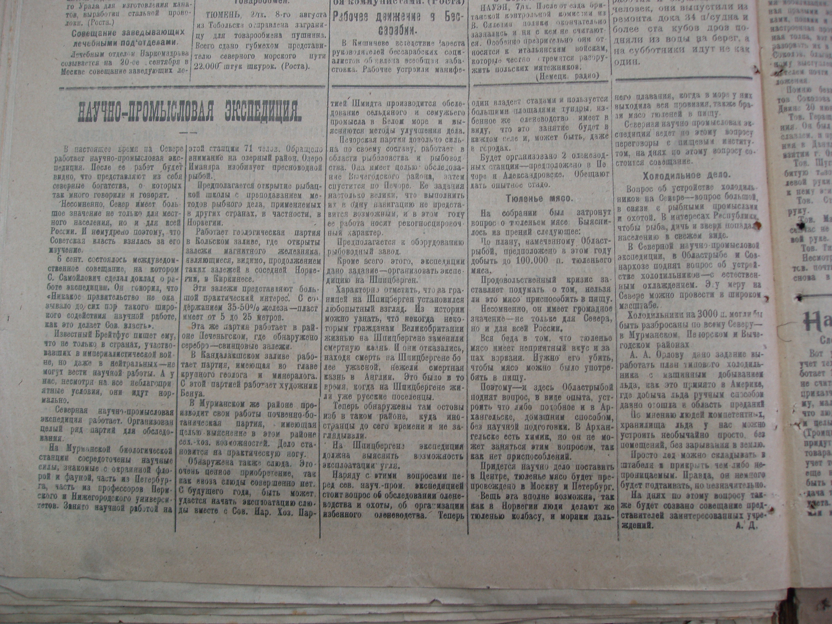 В конце прошлого года работал в архиве политических партий и движений Архангельской области (г. Архангельск) и нашел несколько заметок в газете "Известия Архгубисполкома Сов.Раб.Крестьян. и Красной Армии. Депутатов и Губкоча РКПб" № 161, от 9 сентября 1920 г.