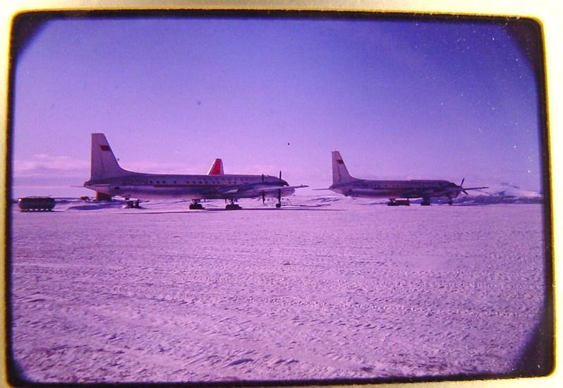 Особый интерес представляет слайд TWO RUSSIAN ILYSUHIN II-18 TRANSPORTS AT SOUTH POLE OPERATION DEEP FREEZE