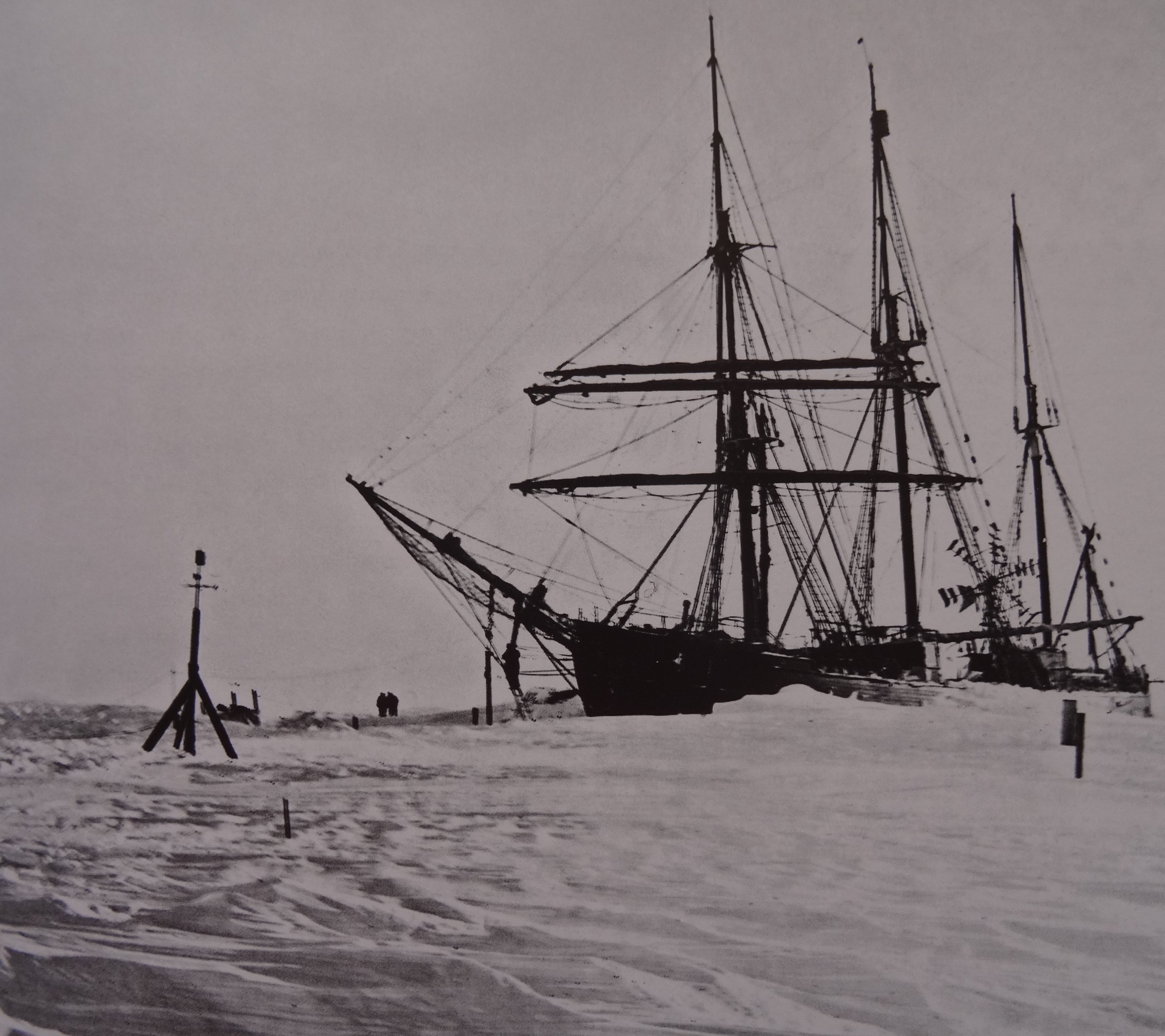 Судно «Гаусс» зажатое во льдах. Фото сделанное с воздушного шара, первая аэрофотография в Антарктиде