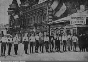 Четверо спортсменовлыжников Московского клуба имени Октябрьской революции Московско-Казанской железной дороги — Васильев Дмитрий, Немухин Александр, Савин Владимир и