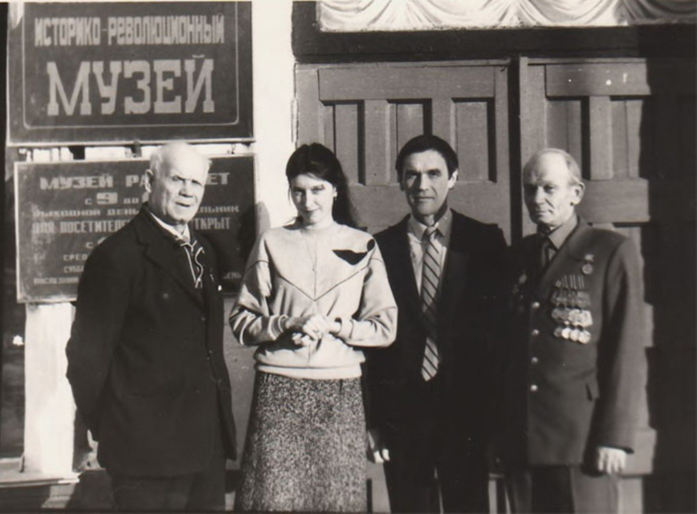На фото: У входа в музей. Слева направо: К. М. Власов, М. М. Левкоева, В. С. Лизунов, А. М. Власов.