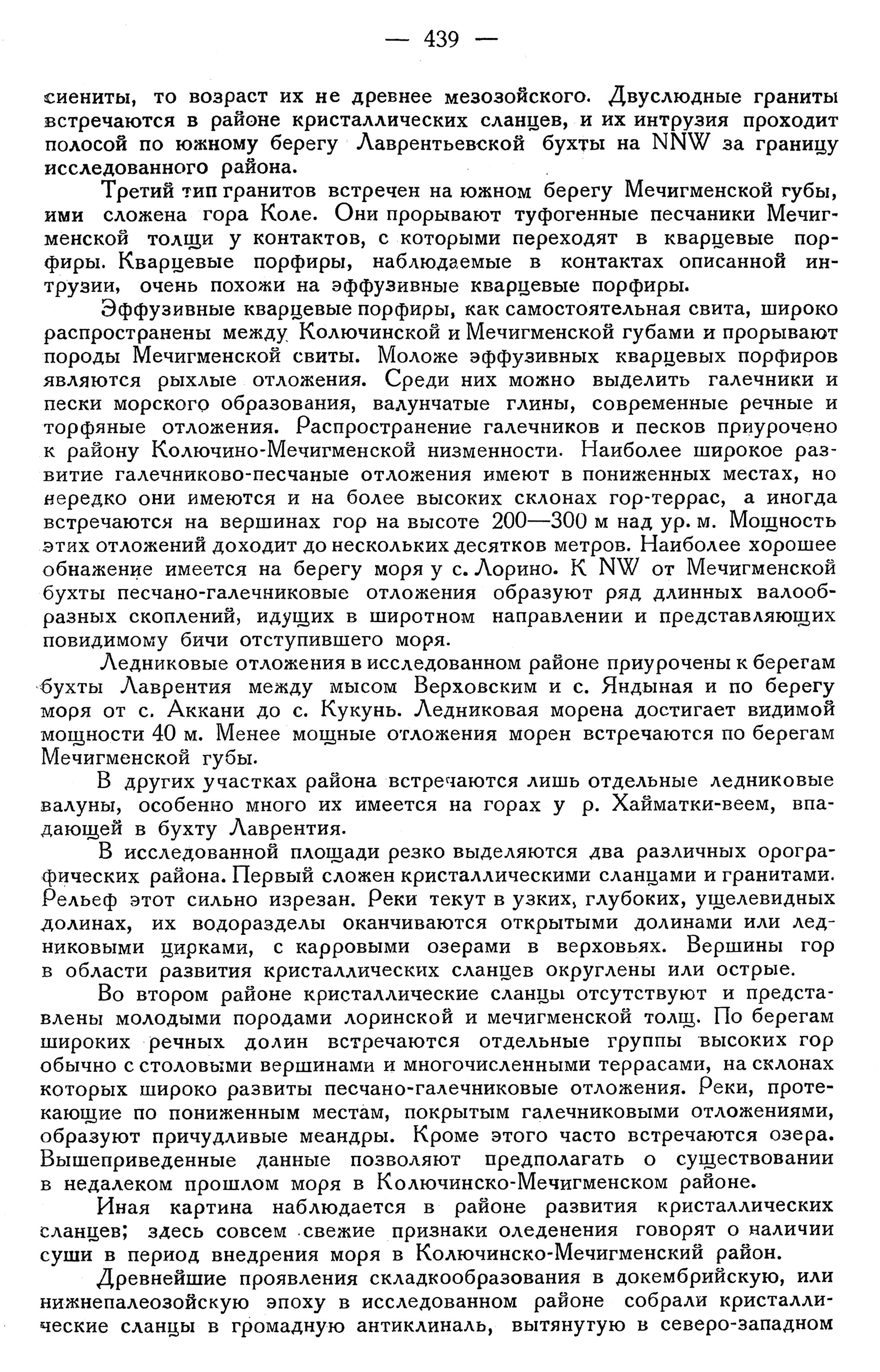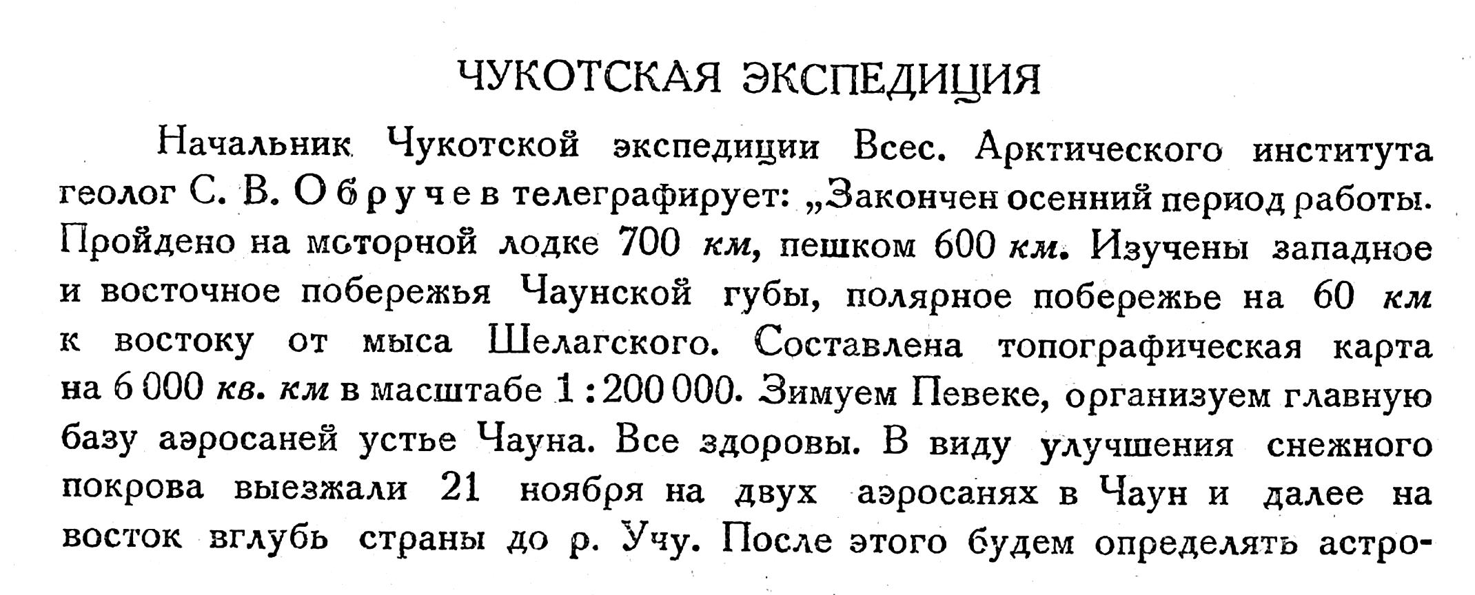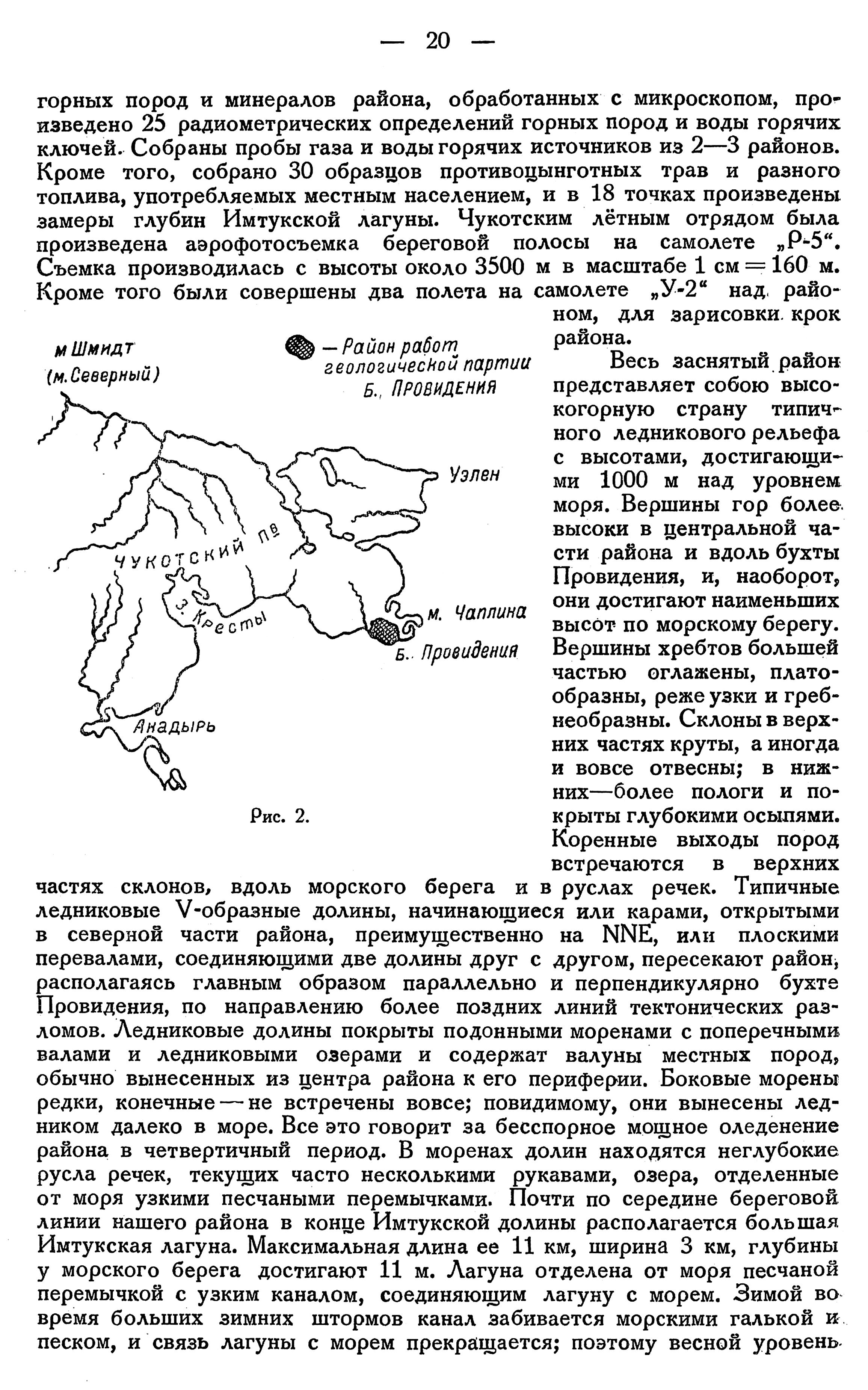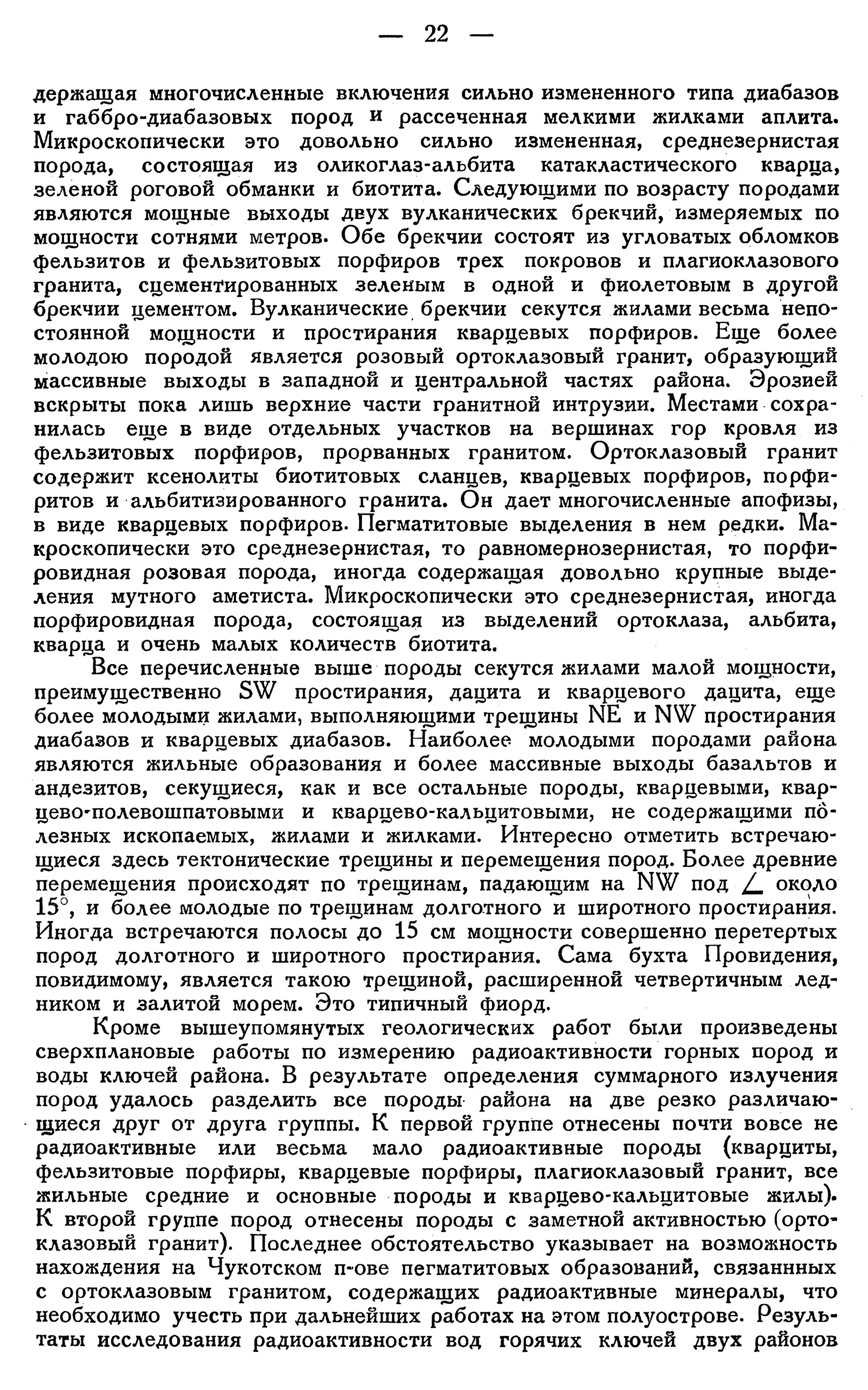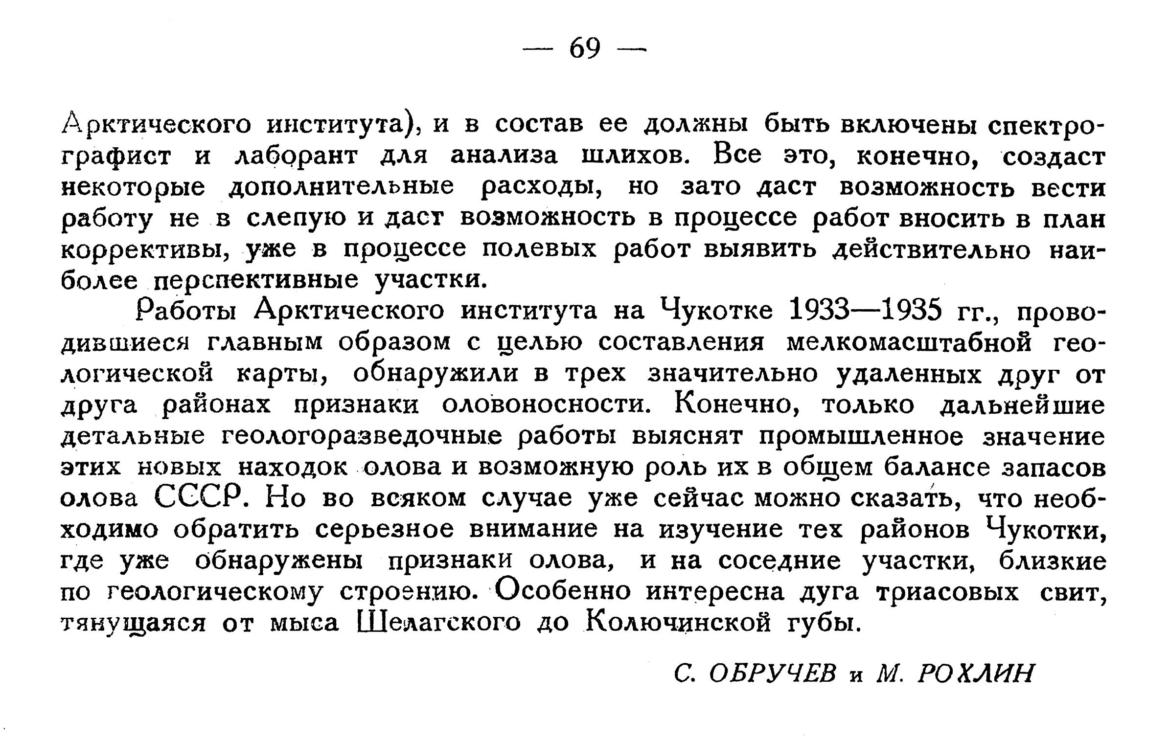 Исследования Арктического института на северном побережье Чукотки в 1933—1935 гг. (работы В. Вакара, В. Дитмара, В. Серпухова и мои), которые покрывают всю зону, шириной в 300 км, от Колымы до р. Амгуемы, выяснили строение области, являвшейся до сих пор совершенно неизвестной. В общих чертах исследования подтверждают ту схему тектоники северо-востока, которая была предложена мною в 1934 г. {1}