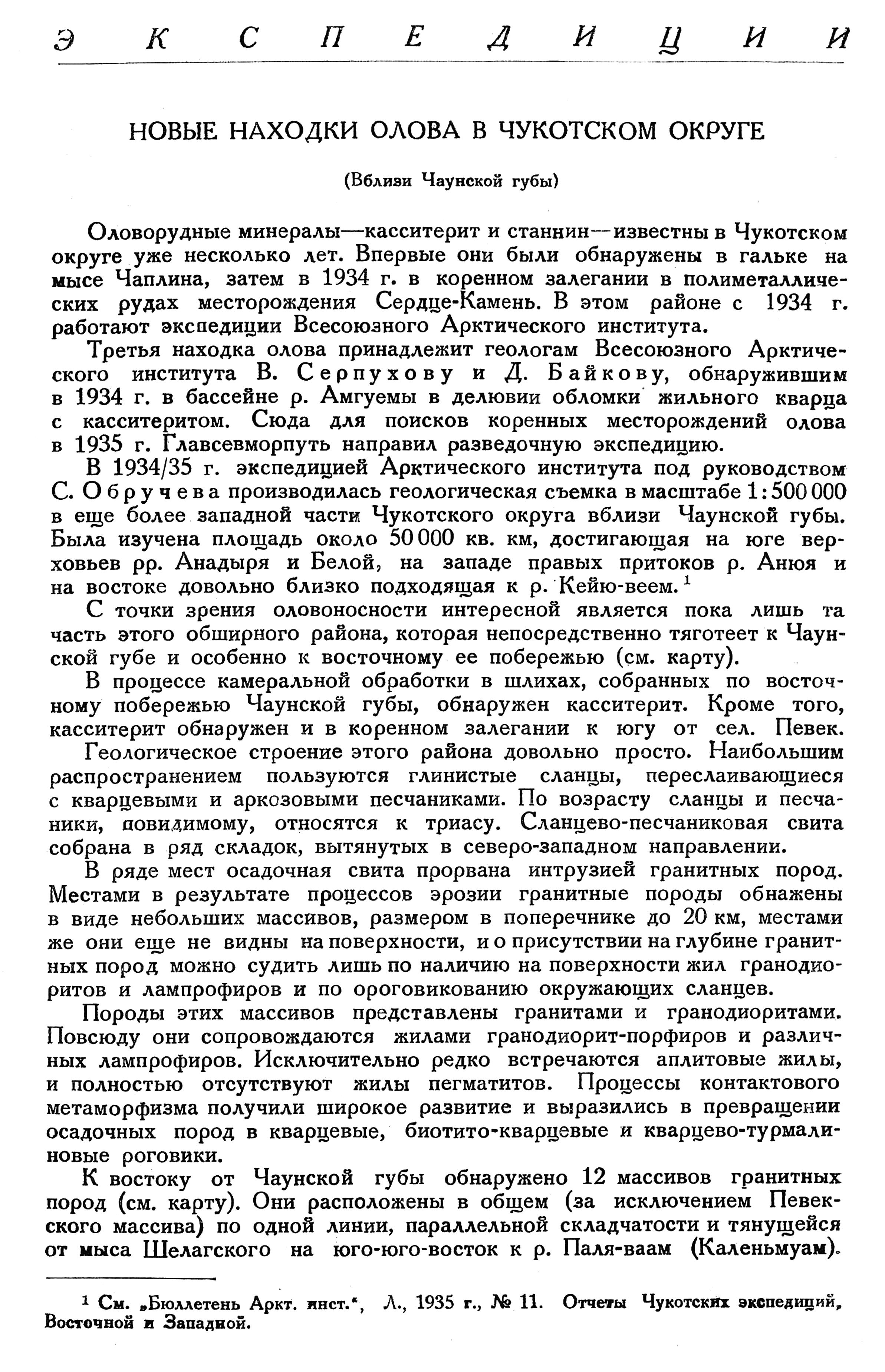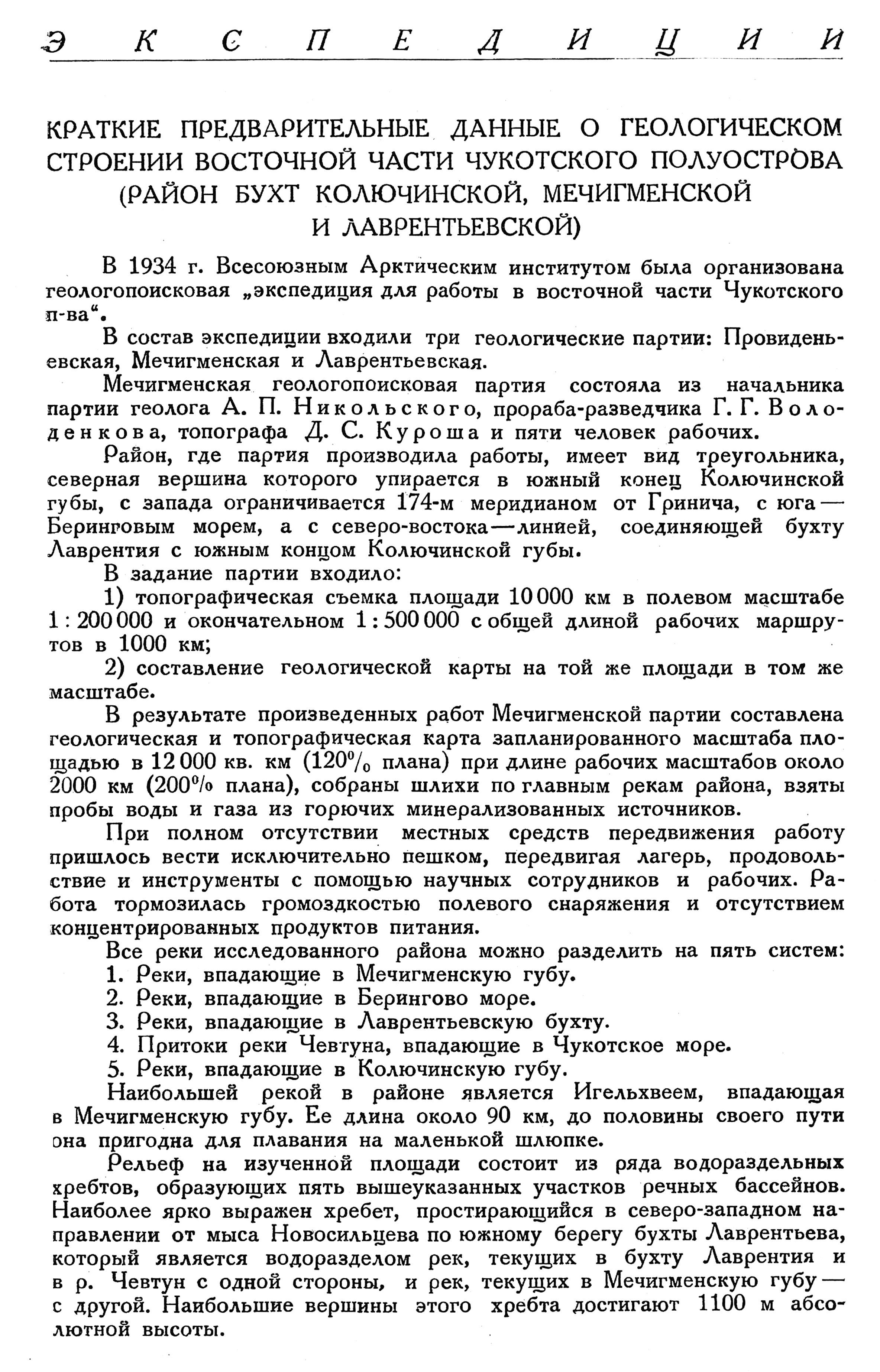 ИССЛЕДОВАНИЕ ЧАУНСКОГО РАЙОНА ЧУКОТСКОГО ОКРУГА В 1934—1935 ГГ.