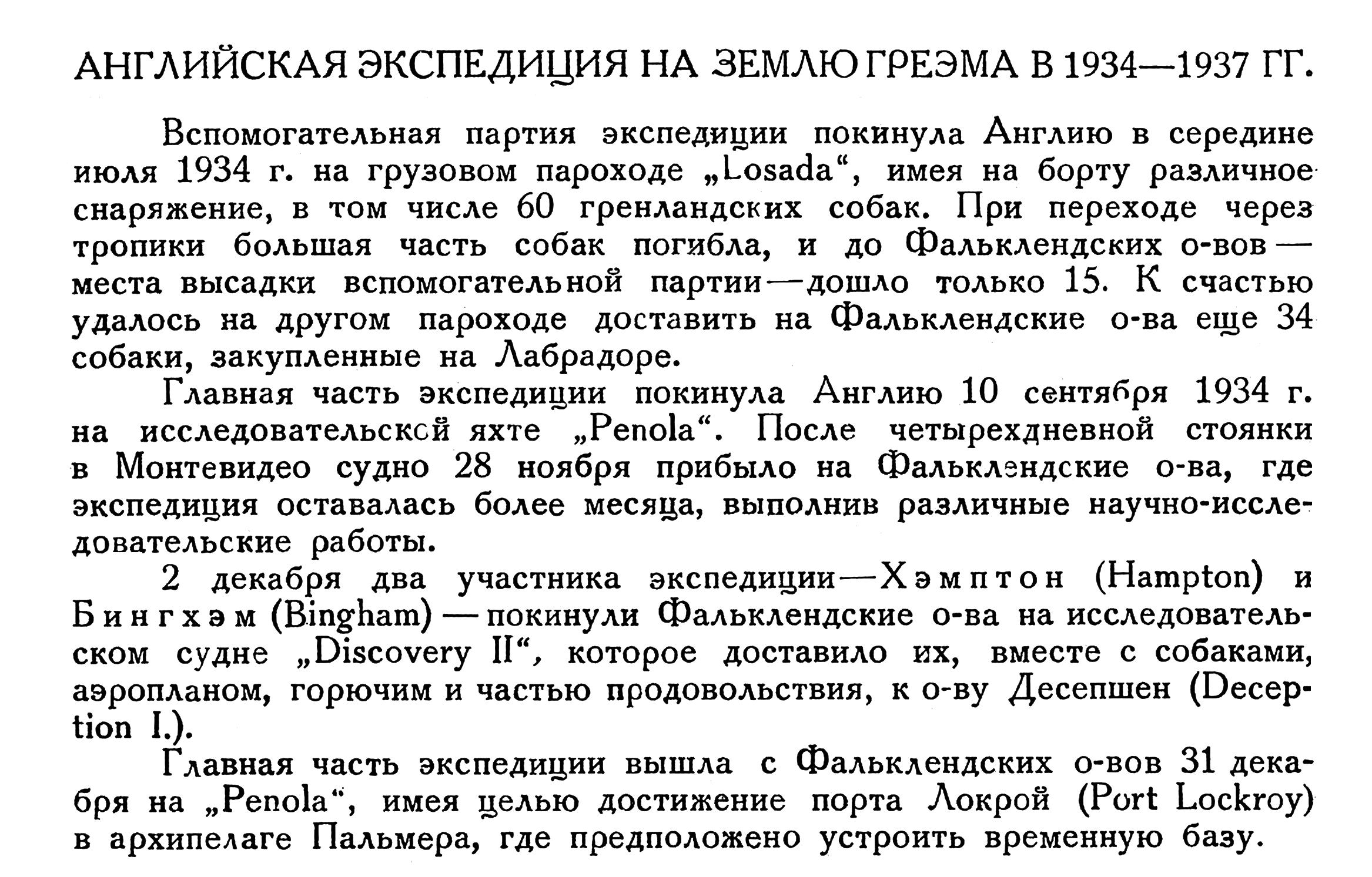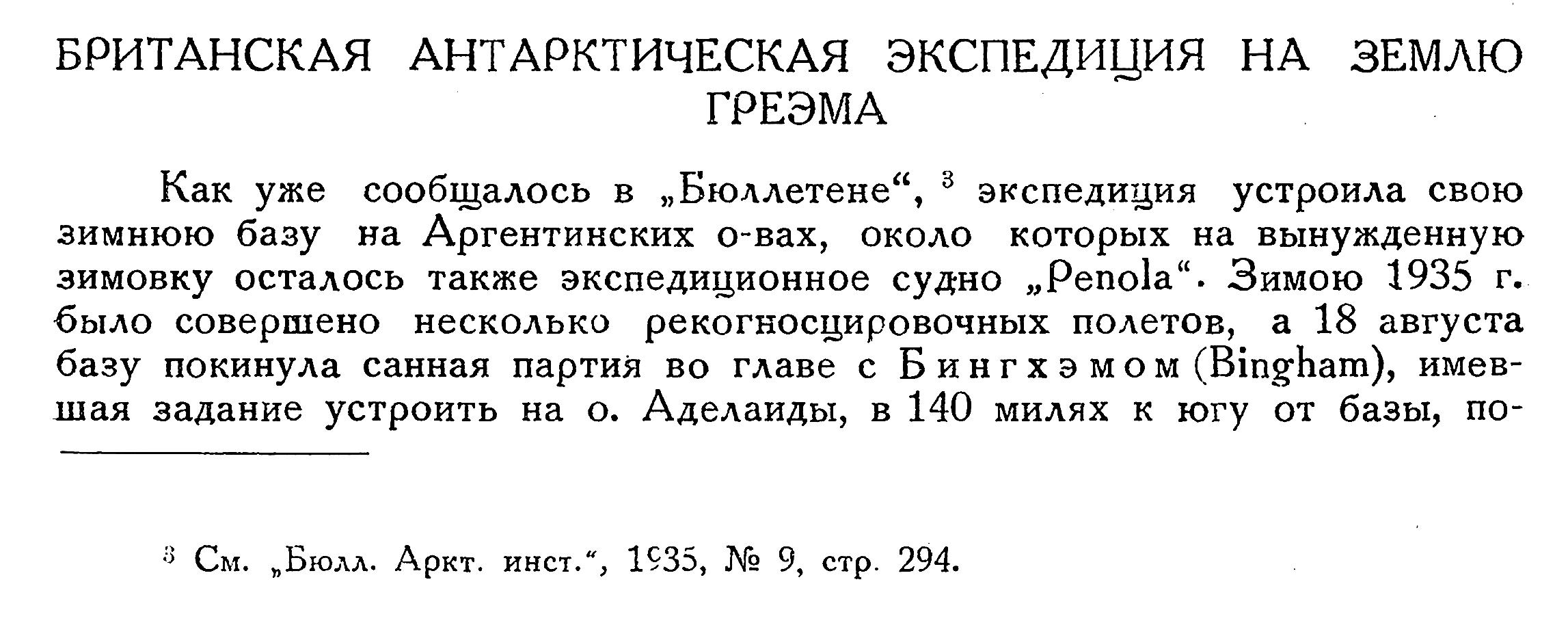 Бюллетень Арктического института СССР. № 10-11. -Л., 1936, с. 483БРИТАНСКАЯ АНТАРКТИЧЕСКАЯ ЭКСПЕДИЦИЯ НА ЗЕМЛЮ ГРЕЭМА {1}