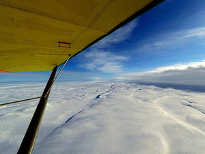 Постепенно под крылом засияло контрастом синее небо, оттененное белоснежными склонами и равнинами озер меж ними.