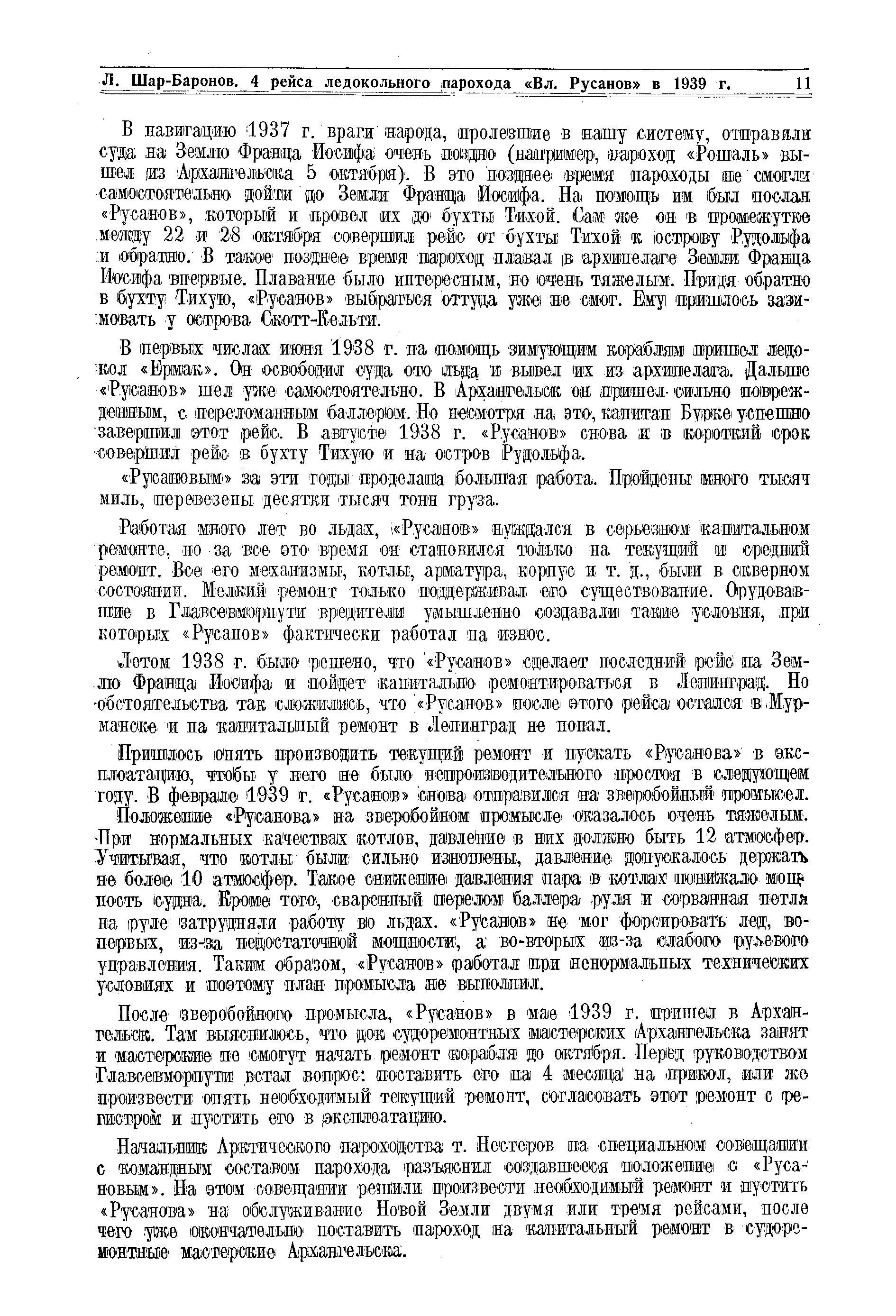 4 РЕЙСА ЛЕДОКОЛЬНОГО ПАРОХОДА «ВЛ. РУСАНОВ» В 1939 г.