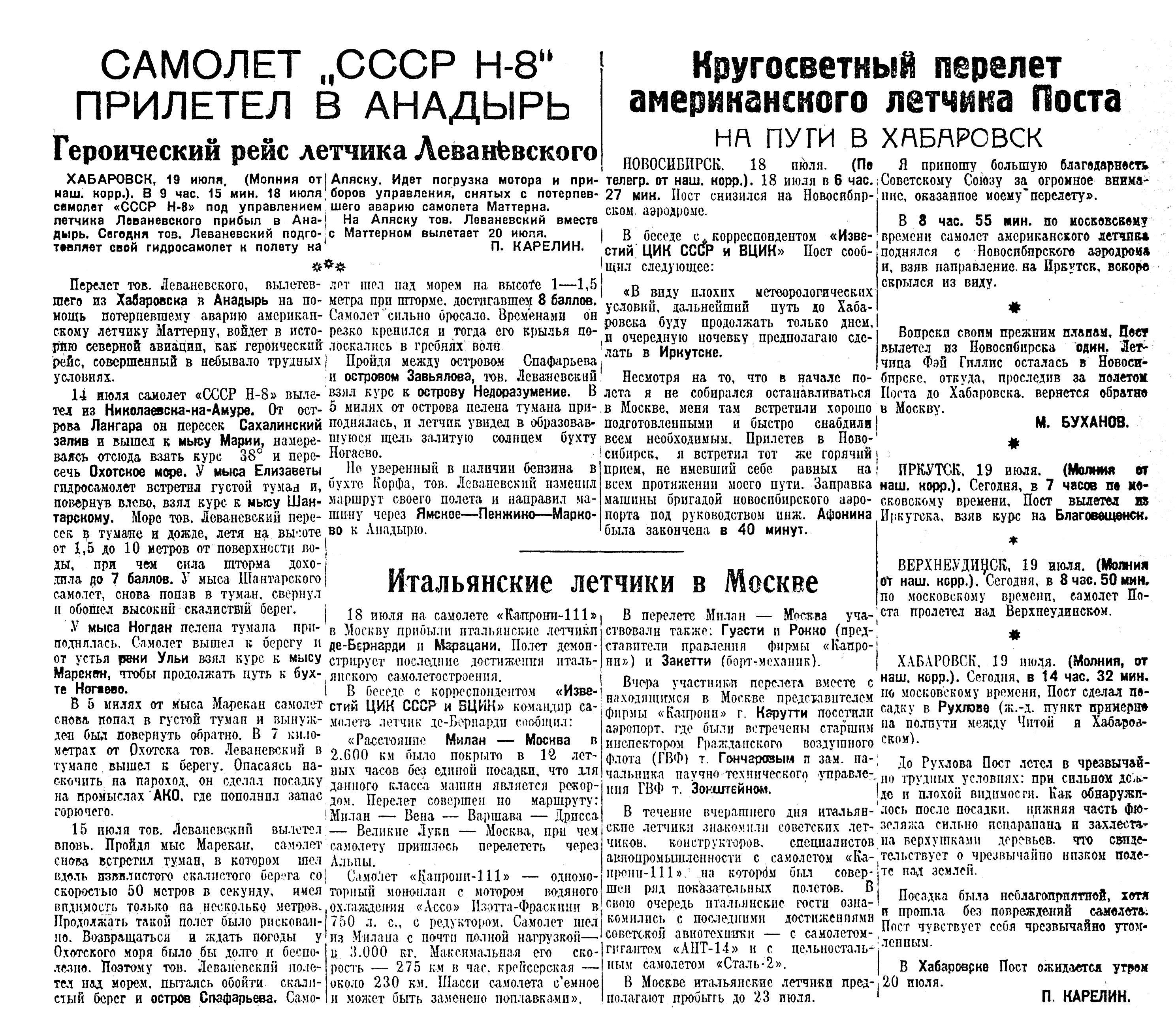 В беседе с корреспондентом «Известий ЦИК ССР И ВЦИК» летчик Пост заявил: