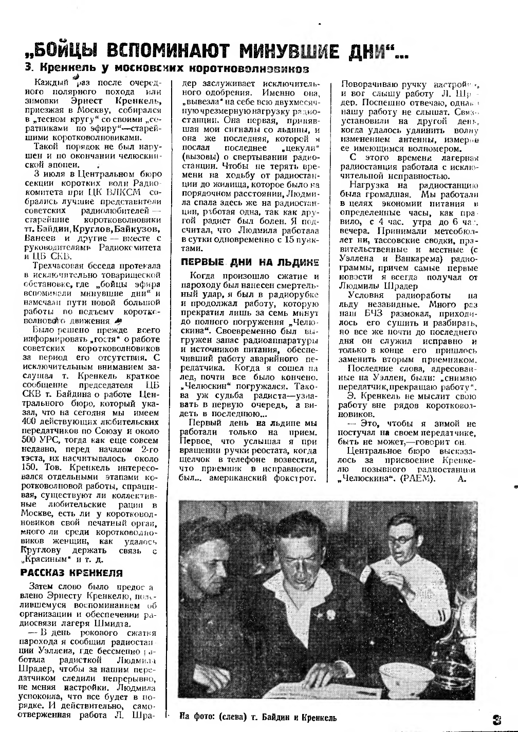 Каждый радиолюбитель сегодня знает имя старшего радиста экспедиции „Челюскина" Эрнеста Кренкеля и его соратников—тт. Иванова и Иванюка.