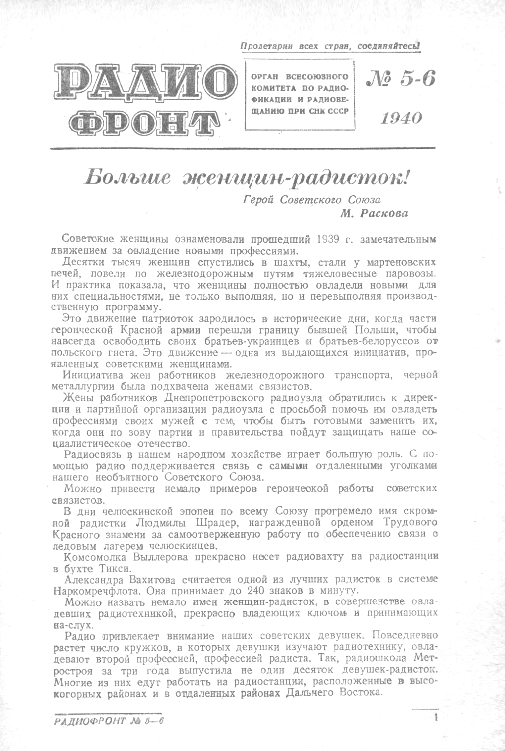Радиофронт 1940 г. №05-06 с.1-2