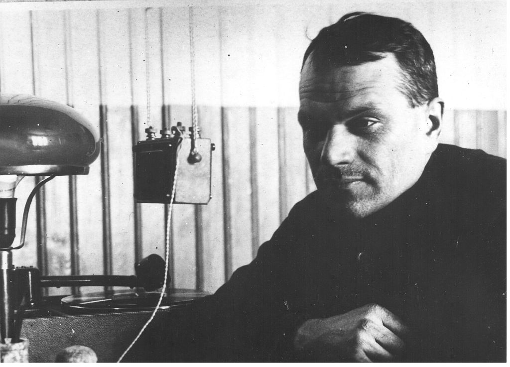 Круглов за микрофоном в студии передающего центра острова Диксон.