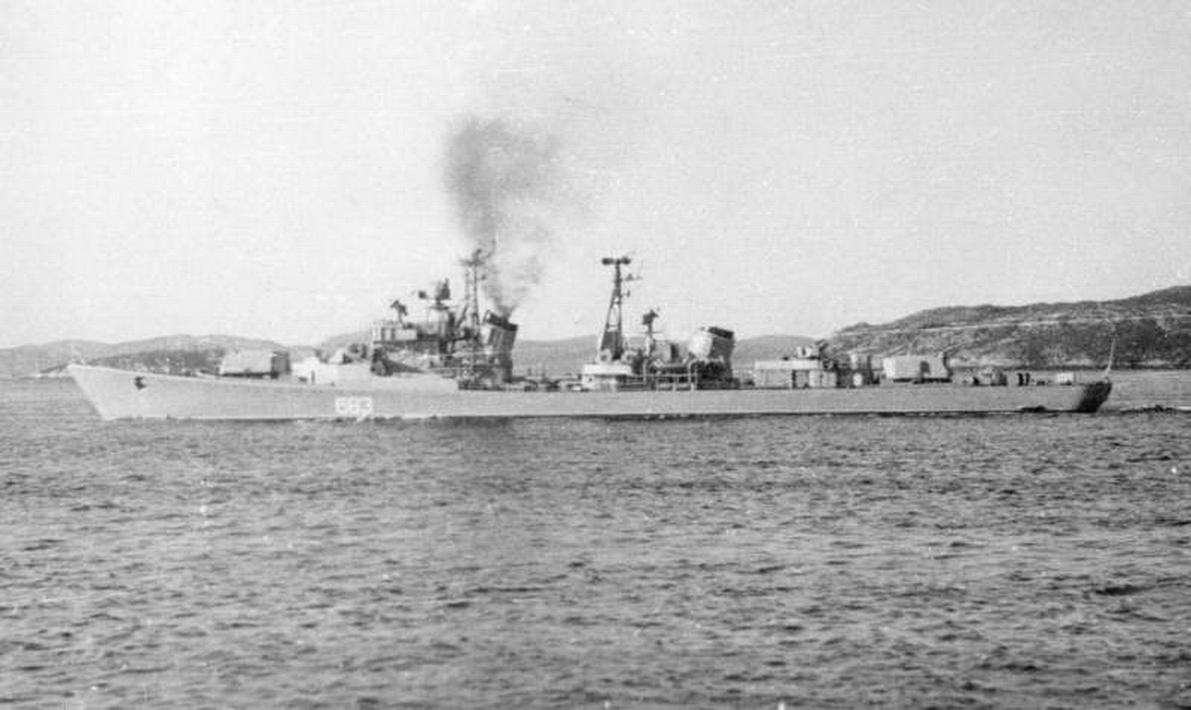Главстаршина Н.Ф.Гайдамака на ПЛ в Авачинской бухте (Камчатка). Носовые части его и соседней ПЛ оборудованы буксирными устройствами для буксировки лодок впритык за ледоколом и обтекателямии гидроакустических станций.