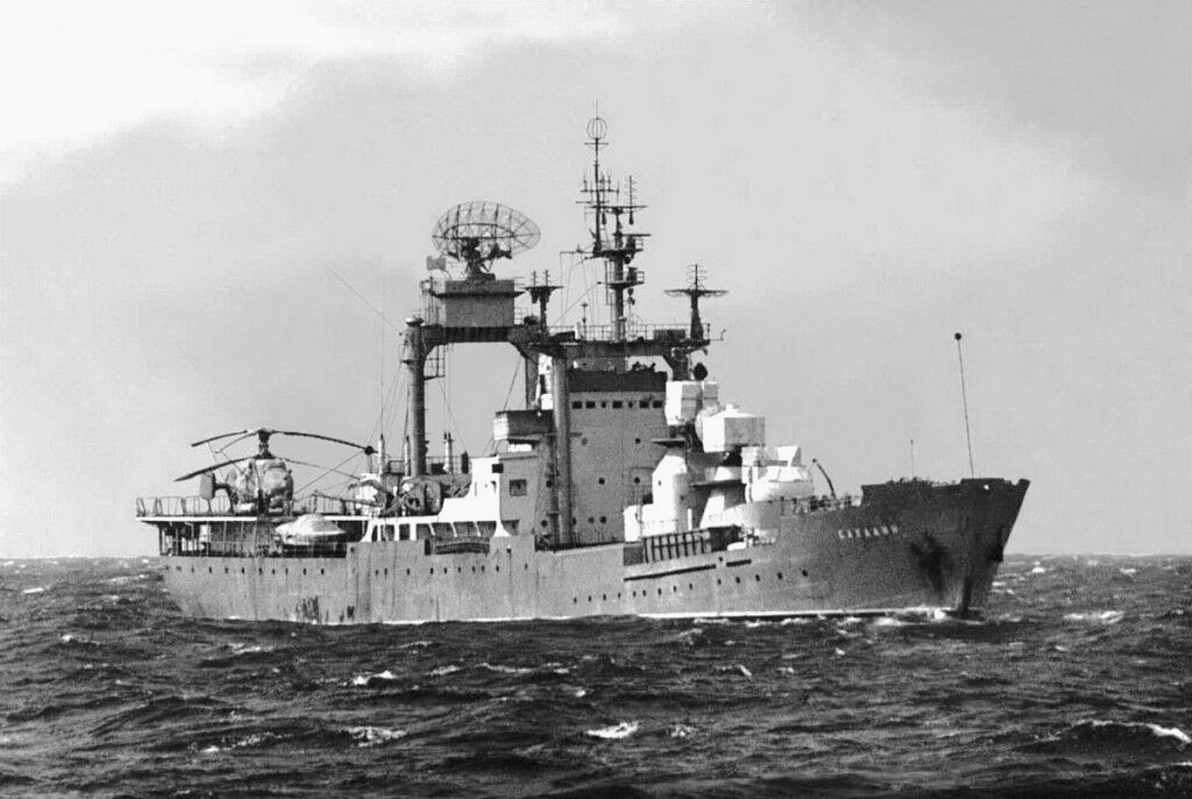 - 4 КИКа - бывшие пароходы-углевозы Пр.В-31 (типа «Углегорск», класс «Донбасс», польской постройки - на Гданьской верфи в 1952-1957 гг.), «Сибирь» (бывший «Павлоград», командир - капитан 1 ранга В.А. Седов; на снимке слева с вертолётом Ка-25 на борту), «Сахалин» (бывший «Пермь», командир - капитан 1 ранга В.В.Зонов; на снимке справа с вертолётом Ка-25 на борту)