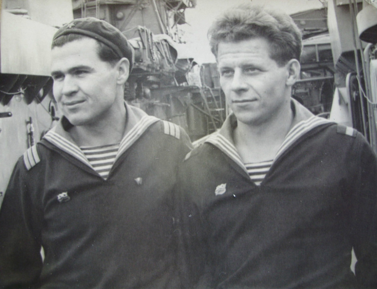 Ст. матрос Воронков (справа) с сослуживцем на борту экспедиционного океанографического судна "Полюс" ТОФ. Владивосток, 1962 г.