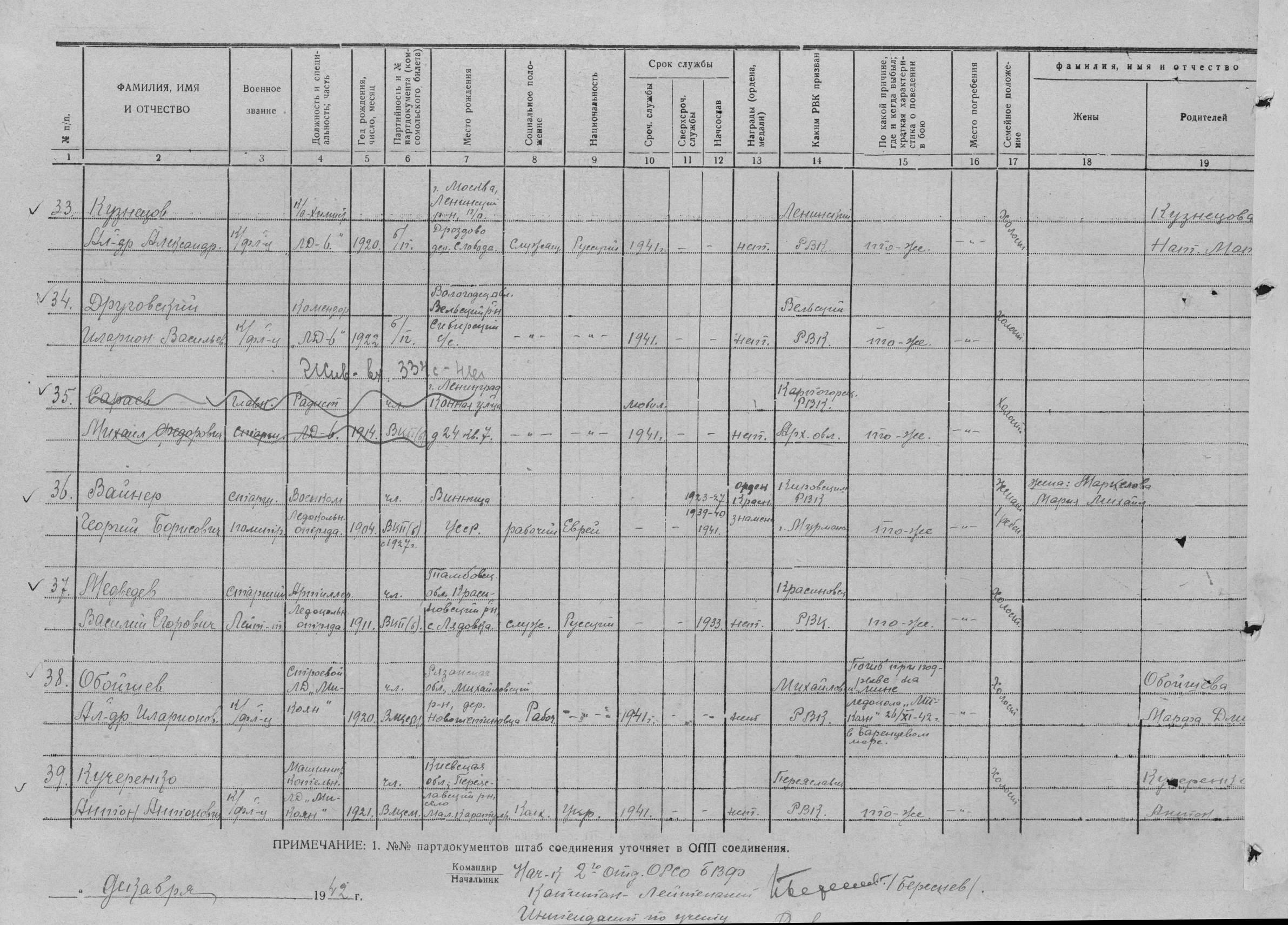 Дата и место призыва __.__.1941 Кировский РВК, Мурманская обл., г. Мурманск, Кировский р-н