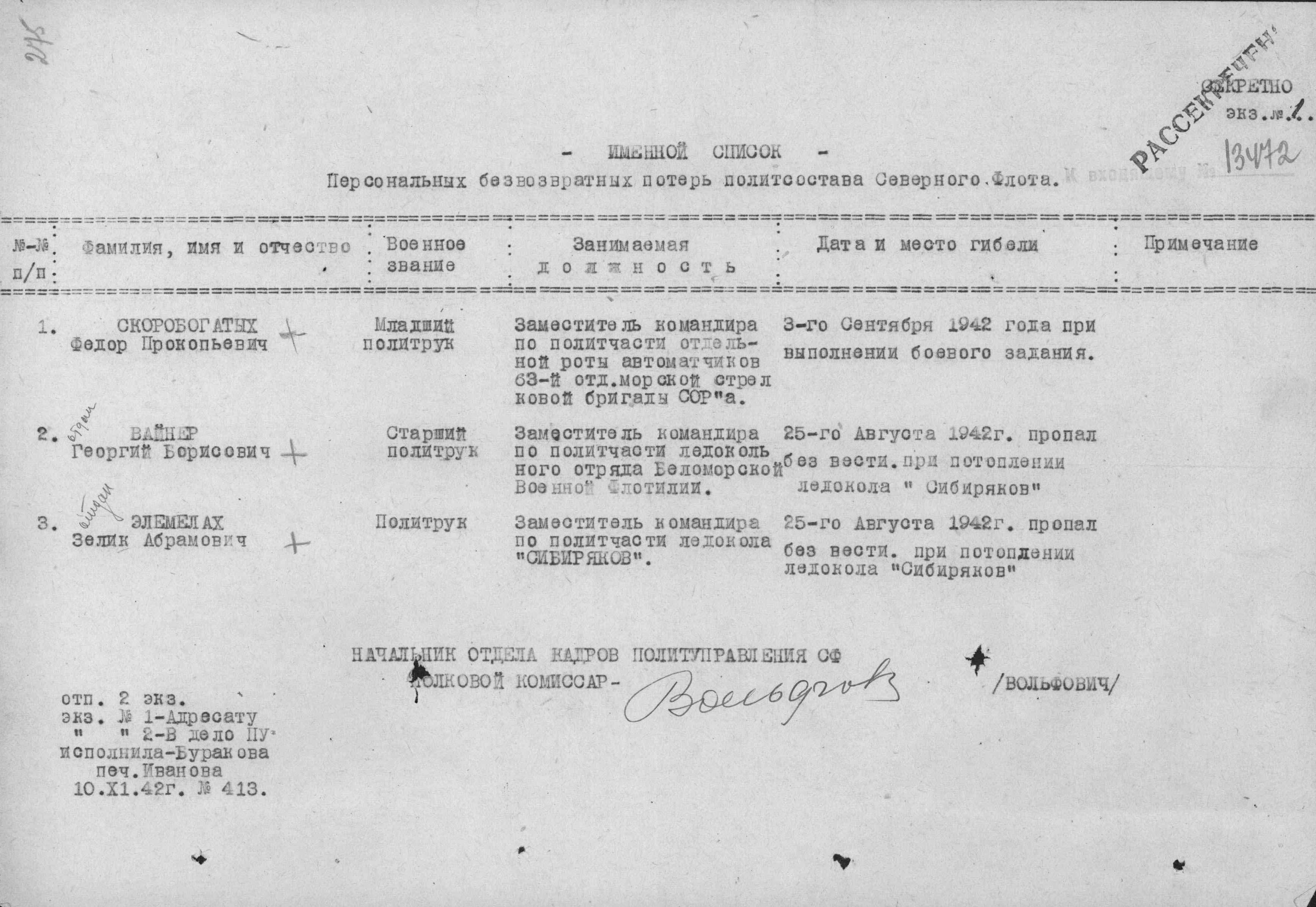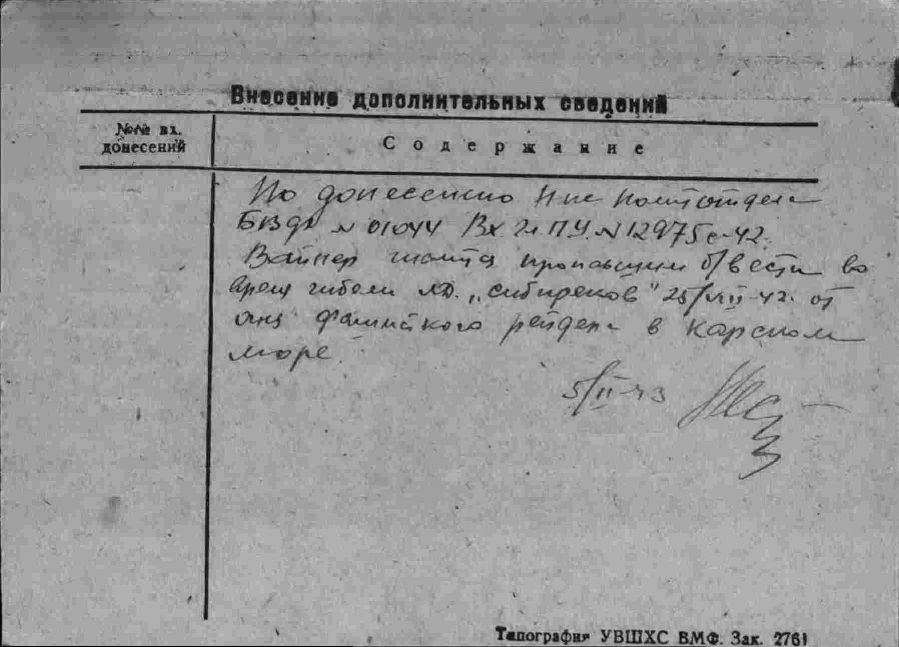 Название источника информации Картотека безвозвратных потерь