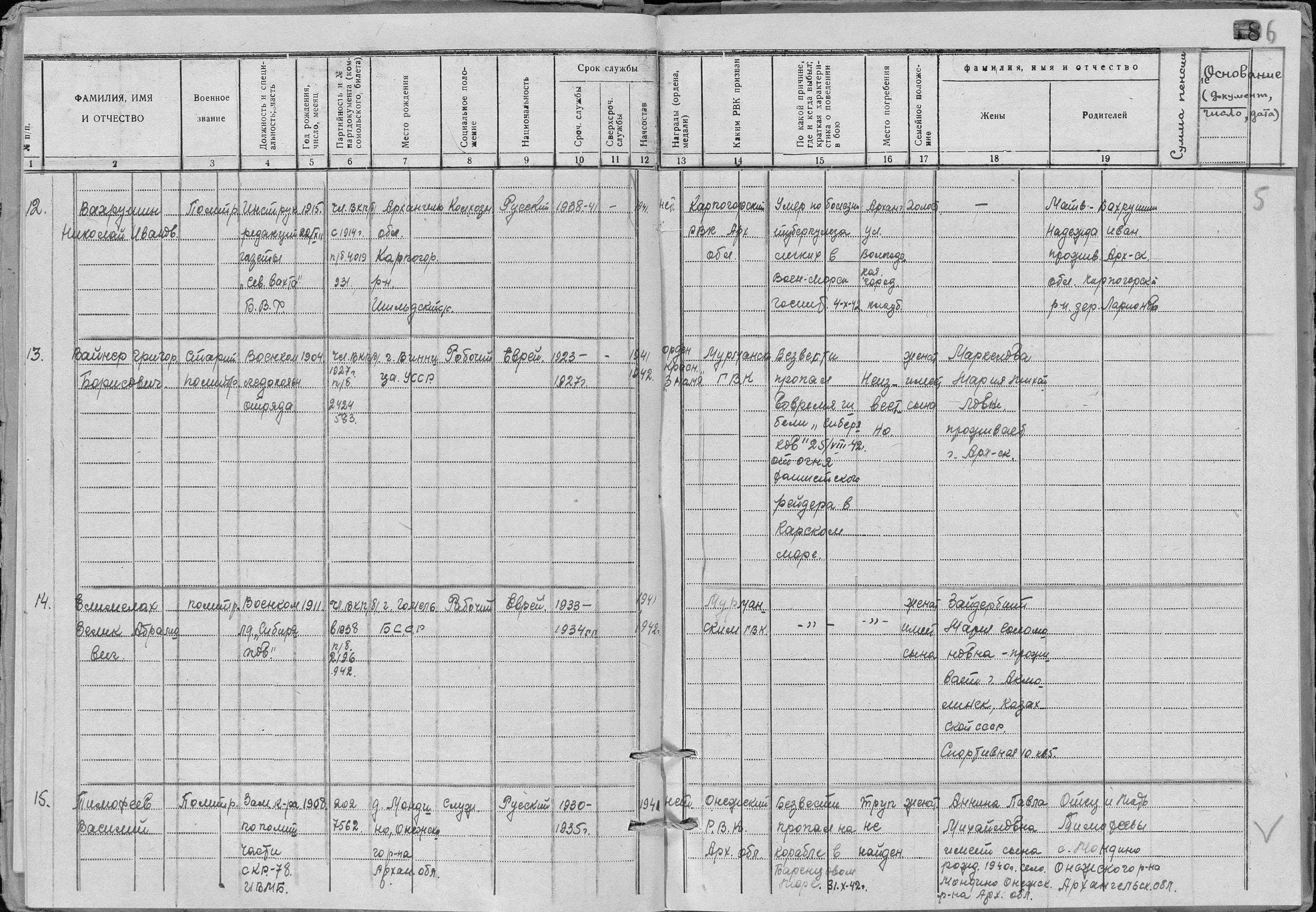 Дата и место призыва __.__.1941 Мурманский ГВК, Мурманская обл., г. Мурманск