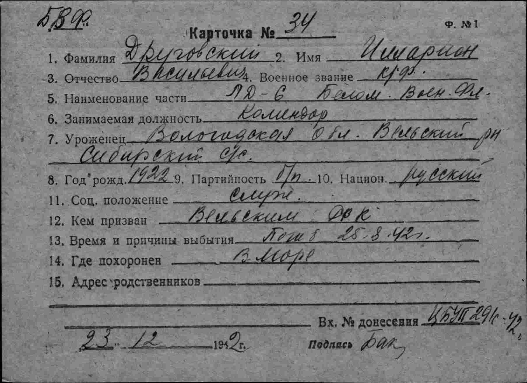 Дата выбытия 25.08.1942
