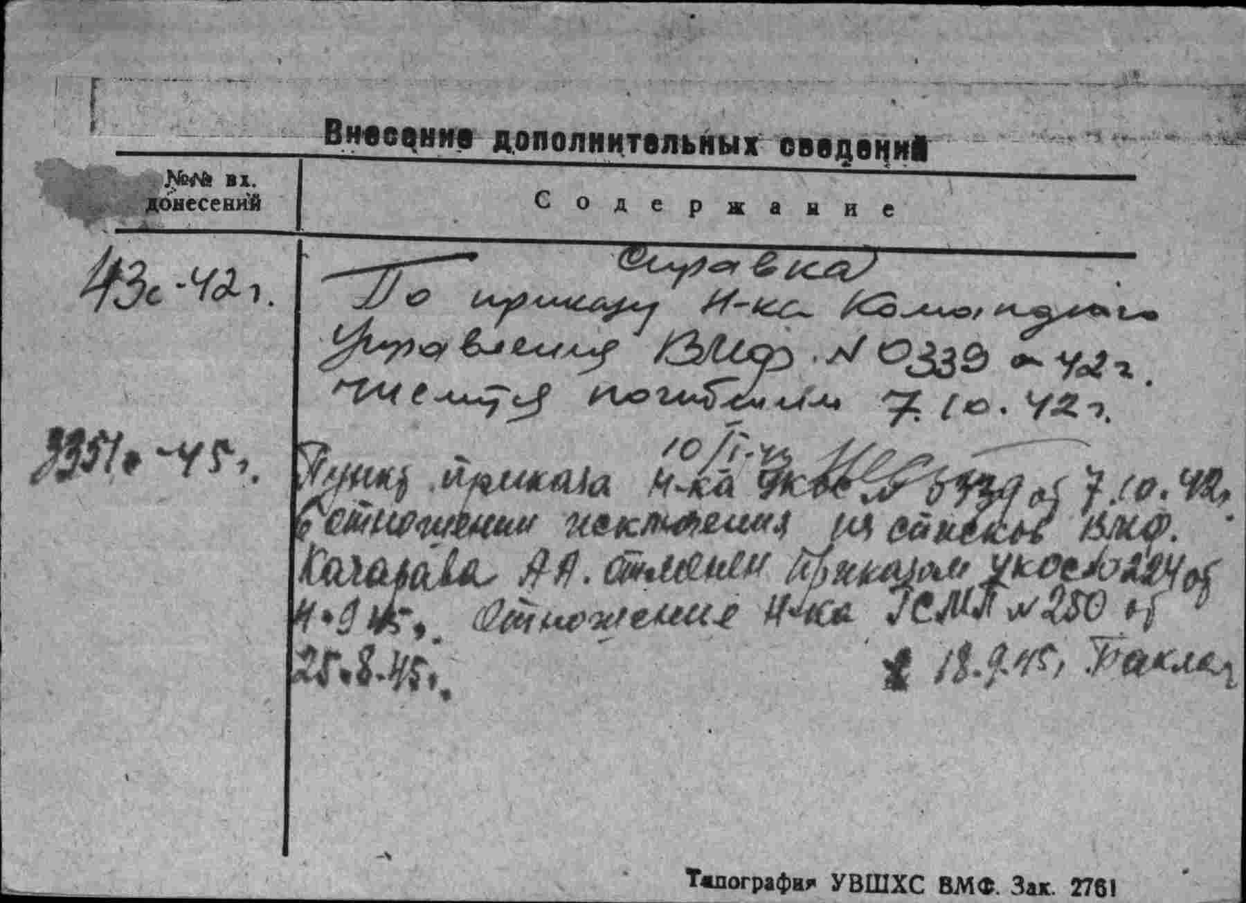 Степан Васильевич скрупулёзно изучал биографию А.А. Качаравы и поделился многими материалами с нашей газетой. Из его публикаций мы узнали, что Анатолий Алексеевич родился 15 августа 1910 года в г. Сухуми (Грузия). Трудовую деятельность начал на морском транспорте в 1926 году. С шестнадцатилетнего возраста всю свою сознательную жизнь посвятил морю…