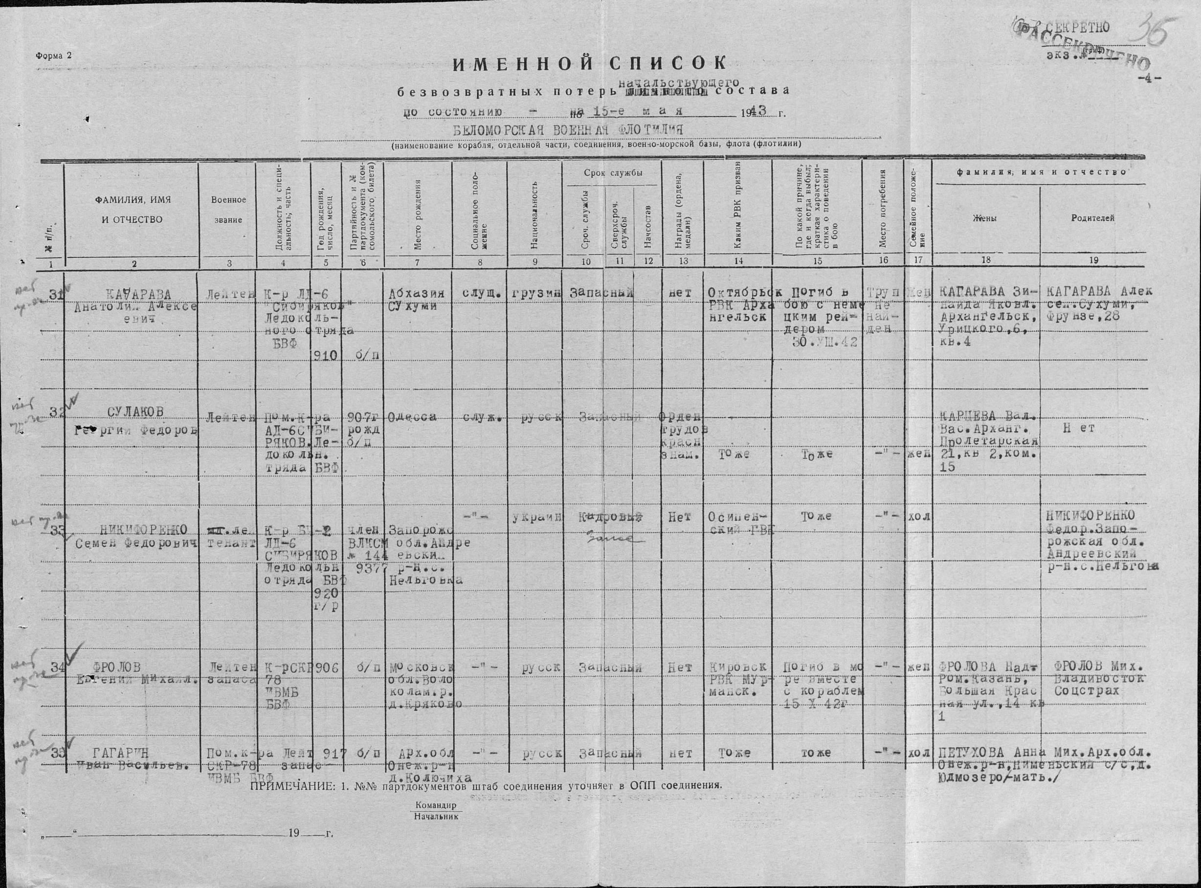 А. Новожилова, да и других дежневцев и сибиряковцев я просил в письмах, чтобы они вспомнили о связях двух кораблей. Побратимские связи имеют более глубокие корни. «По поводу ваших вопросов, – написал А. Новожилов. – Они меня сильно смутили и поставили в тупик. Ничего толком вспомнить не могу. Не припомню, кто из радистов переходил и переходил ли вообще с одного корабля на другой. Больше склоняюсь к тому, что не переходил никто. А вот в памяти что-то отложилось: на «Сибиряков» был переведён сигнальщик Сеньковский или Синьковский, повторяю, что не уверен. На другое судно, но не на «Сибиряков», был переведён радист Ефременко, да и значительно позже, на береговой пост был переведён ещё один радист, а вот фамилию помню неуверенно, вроде Баранов. Пост, на котором он служил, разгромили немцы, он погиб…»