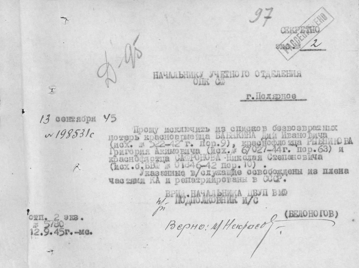 Причина выбытия попал в плен (освобожден)