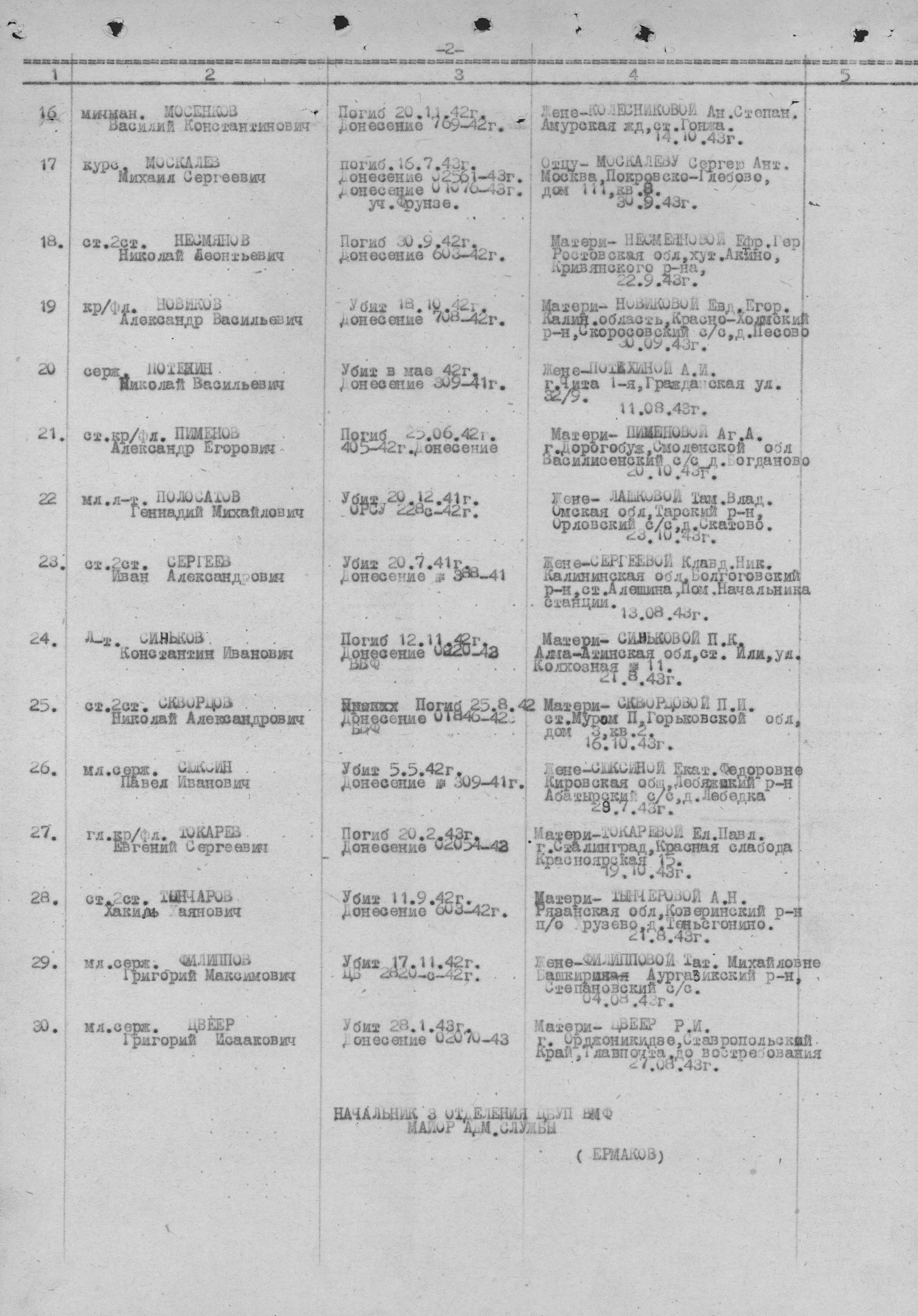Причина выбытия погиб
