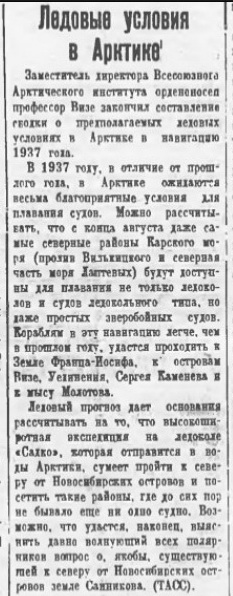 Из года в год продолжаются работы по исследованию и изучению Арктики. В 1937 году будет проведено около 100 научно-исследовательских и поисковых экспедиций.