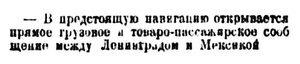 Восстановление постоянных северных морских линий будет способствовать оживлению богатейших районов и привлечет внимание к ним со стороны советского и иностранного капитала.