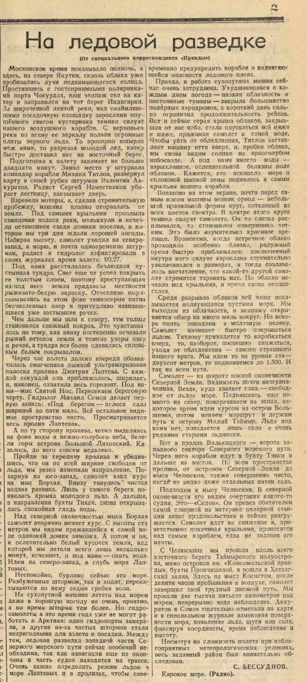 Бессуднов С. На ледовой разведке//Правда,13 октября, 1945, № 245 (10016)