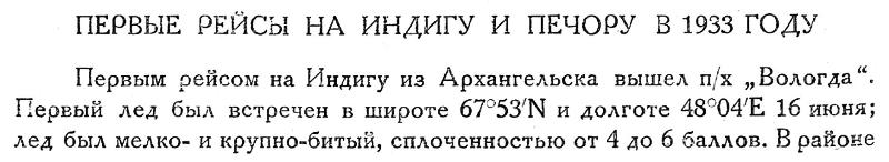 ПЕРВЫЕ РЕЙСЫ НА ИНДИГУ И ПЕЧОРУ В 1933 ГОДУ