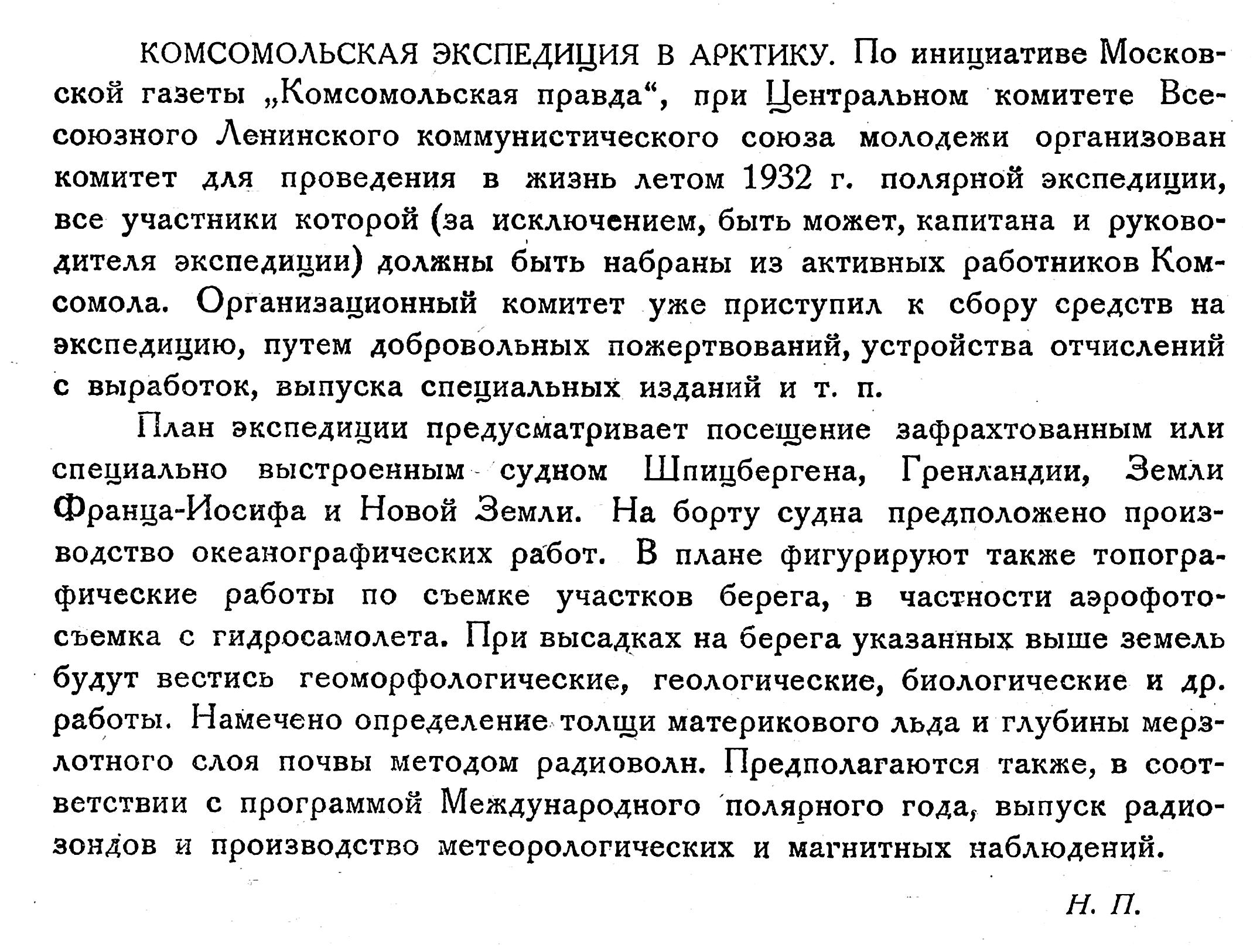 — «Мы не собираемся открывать путь, — говорит Шмидт, — который уже открыт географически, мы собираемся его открыть навигационно. Многие арктические исследователи убеждены, что этот путь можно; пройти в один год. Тогда он приобретет народно - хозяйственное значение, так как это путь по нашим внутренним морям. В случав успеха западный этап этого пути имел бы коммерческое значение для устья Лены и открыл бы большие перспективы перед Якутией и Леной.