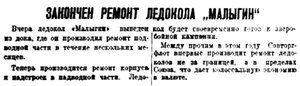Приводится переброска грузов на склады правого берега, на Смольный Буян, куда вероятно будет заброшено около 100 тысяч пудов. На днях снова ожидается массовое прибытие грузов, о чем Совторгфлот получил телеграфное извещение.