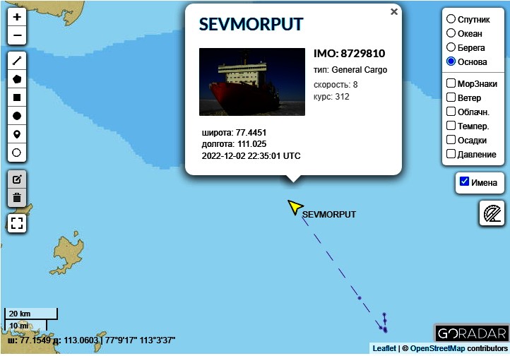 Дедвейт: 3540 / undefined Вот как его место отобразить на карте? На Goradar его курс по прямой имхо из за ограничений горадарной карты.