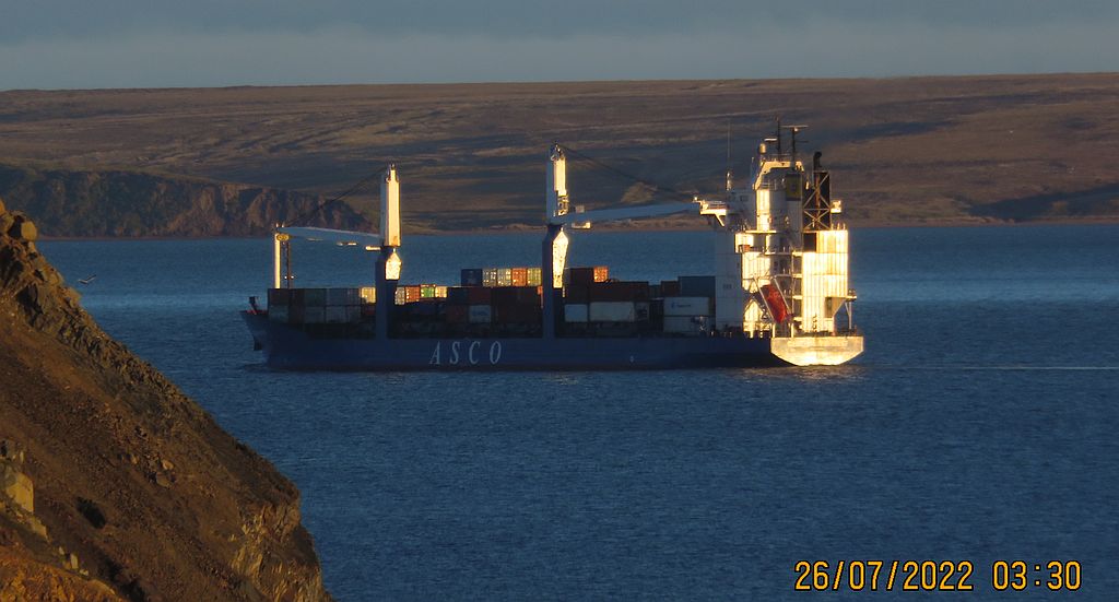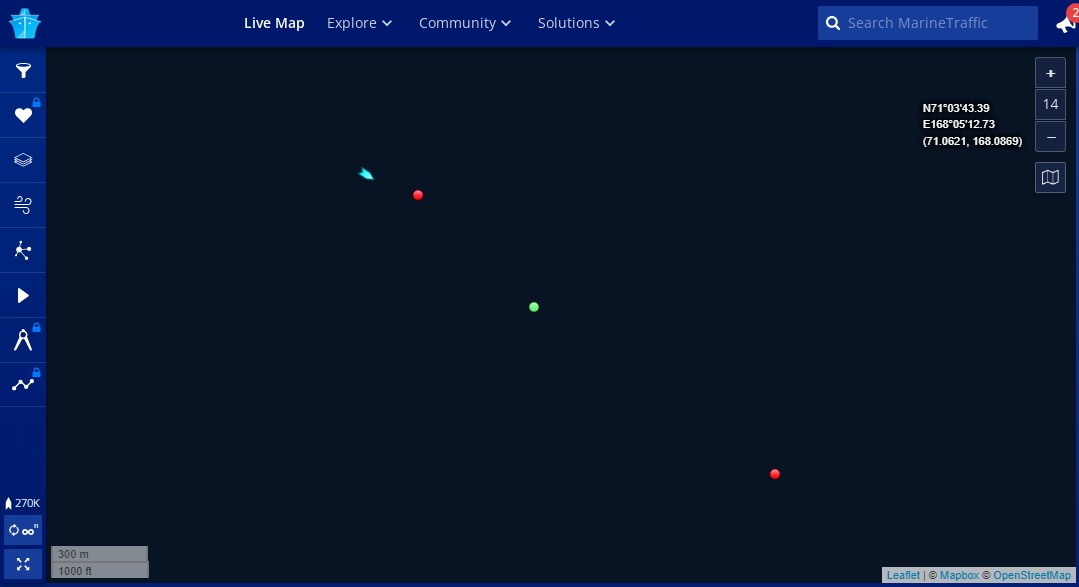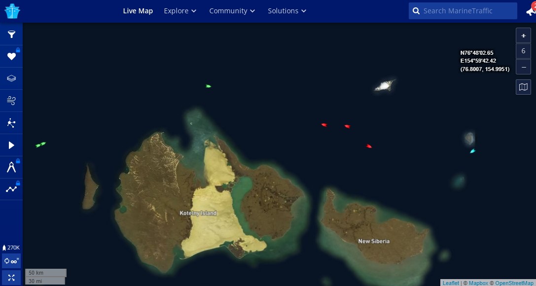 Из-за Врангеля вышел газовоз Эдуард Толль, идёт к Дежнёву.