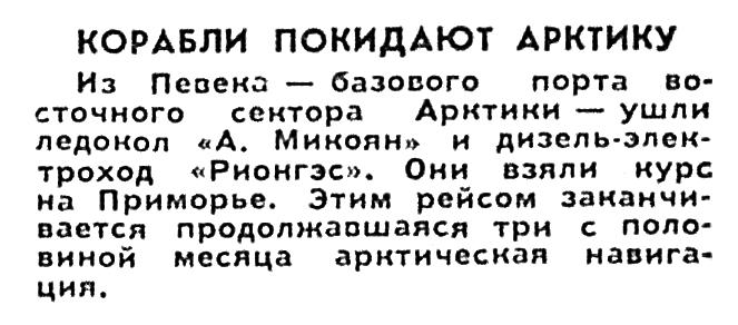 Со дня на день на корабль прибудут судовые повара и хлебопеки. Пищеблок ледокола давно готов, а в электропекарне успешно прошла пробная выпечка хлеба и пирогов. Многочисленные каюты и культурно-бытовые помещения моряков оборудованы первоклассной мебелью фабрики «Интурист» и других ленинградских предприятий, славящихся своими мастерами-краснодеревцами. Для судовой библиотеки поступило 1600 томов книг, а всего здесь будет три с половиной тысячи томов. На судовой радиостанции также все готово для приема и передачи радиограмм.