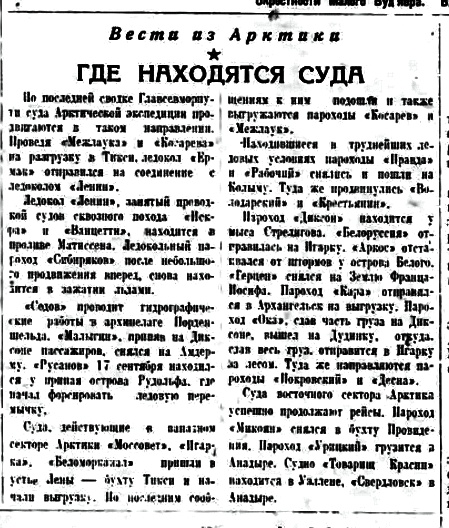 Где находятся суда//Полярная правда 23 сенября 1936